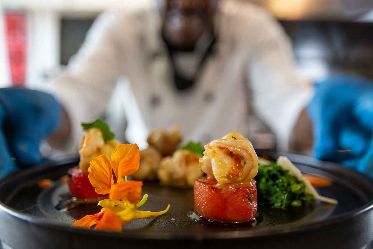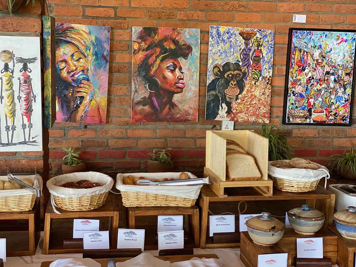 Im Heaven Restaurant mit Bar mit schönem Außenbereich, wird neben dem Frühstück auch internationale Küche mit ruandischen Einflüssen angeboten. Viele der Gemüse und Kräuter stammen aus dem eigenen Garten, auf frische und qualitativ hochwertige Produkte wird großen Wert gelegt. Es gibt außerdem eine enge Zusammenarbeit mit lokalen Bauern und einer deutschen Metzgerei.