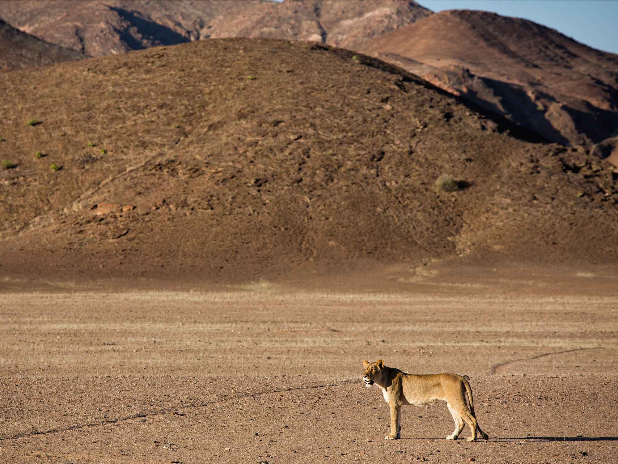 Das Hoanib Valley Camp liegt im Kaokoveld im Nordwesten Namibias, eingebettet in ein breites Flusstal mit kargen Berghängen und offenen Ebenen. Die Region ist weitläufig, trocken und gilt als Rückzugsraum für Tiere, die sich an Wüstenbedingungen angepasst haben. Die Abgeschiedenheit prägt jede Reise in dieses Tal.