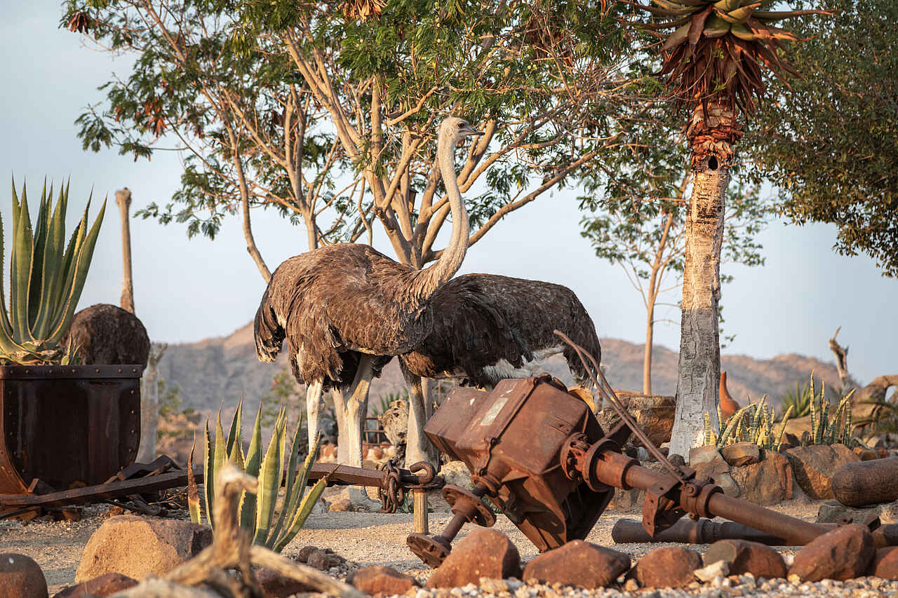 Im direkten Umfeld der Lodge leben verschiedene Antilopenarten wie Kudus und Klippspringer, außerdem Paviane, Klippschliefer und Mangusten. Die felsige Landschaft ist Lebensraum für Leoparden, die jedoch selten zu sehen sind. Besonders artenreich ist die Vogelwelt: Zu den häufig gesichteten Arten zählen Schreiseeadler, Perlhühner, Turakos und verschiedene Webervögel. Die Naturbeobachtung erfolgt hier nicht aus dem Geländewagen, sondern zu Fuß oder vom Bungalow aus mit Blick auf die Ebene.