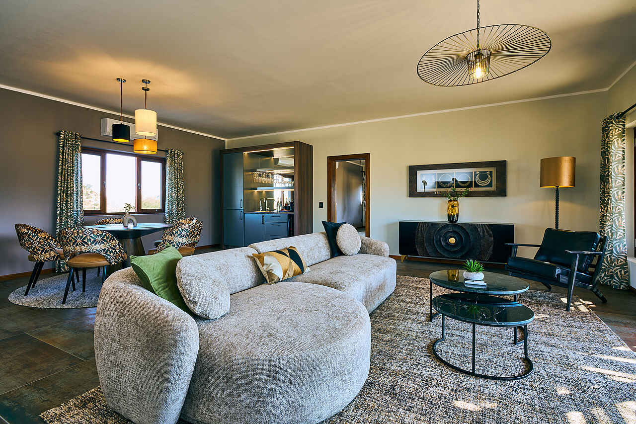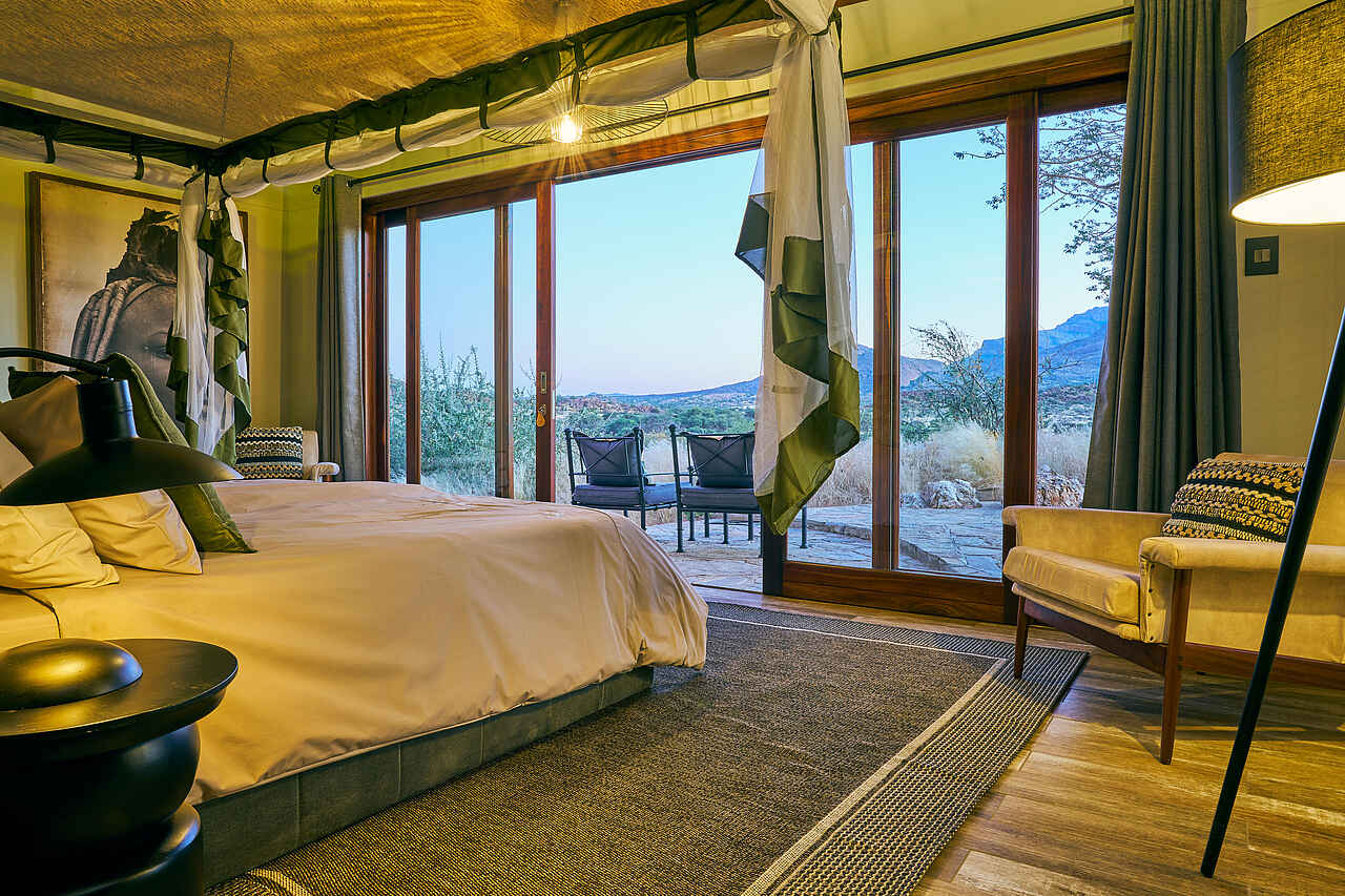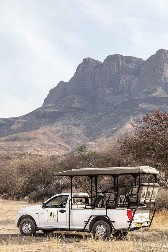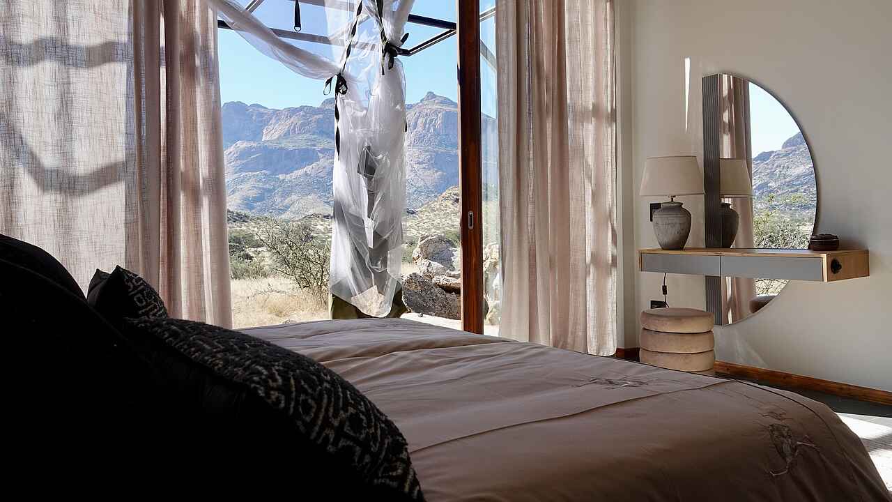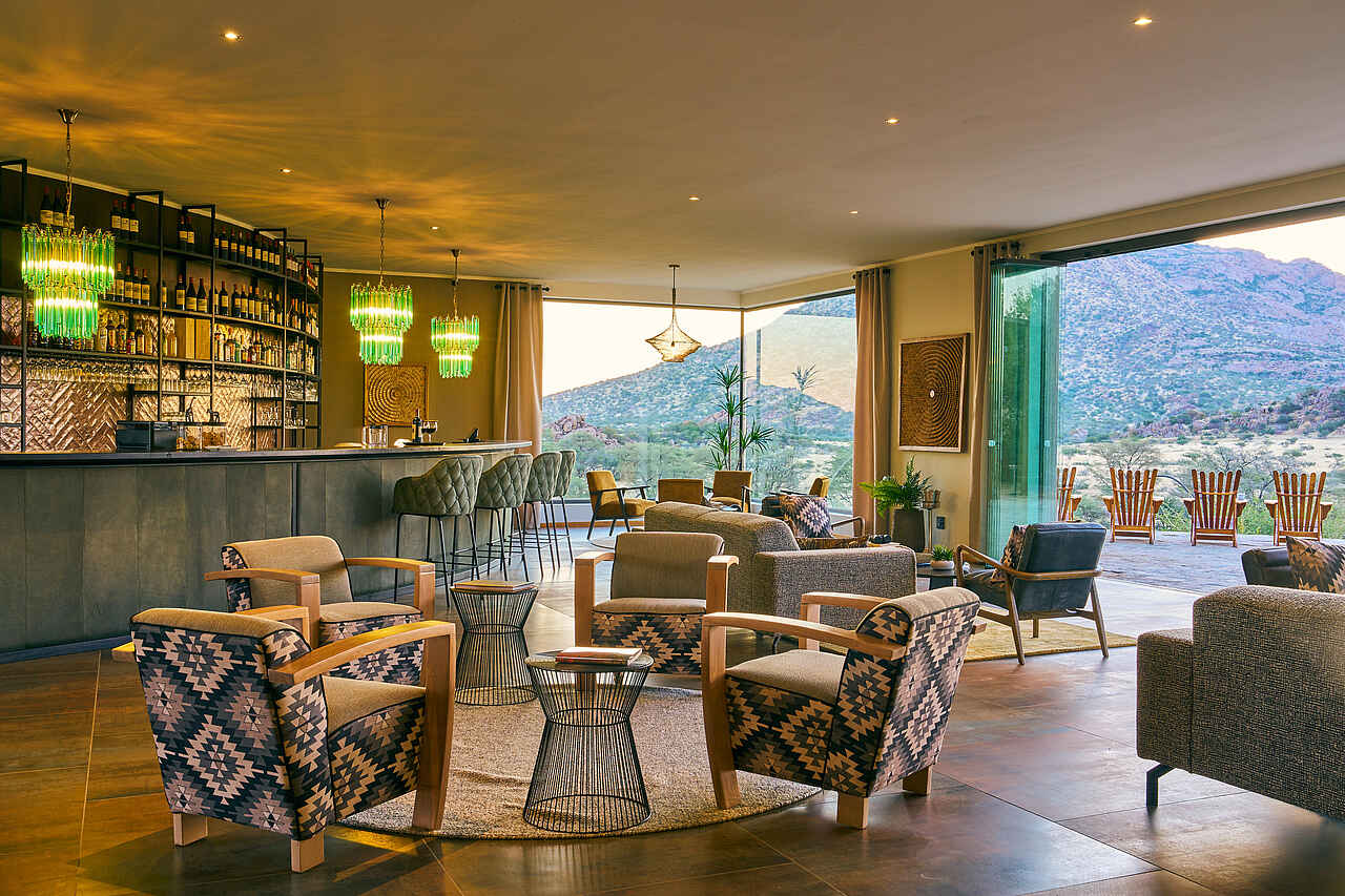 Die Hohenstein Lodge liegt im Westen Namibias, am Fuß des höchsten Gipfels des Erongo-Gebirges, dem 2.319 Meter hohen Hohenstein. Eingebettet in eine ursprüngliche Fels- und Savannenlandschaft eröffnet sich Gästen ein weiter Blick über die Ebenen bis zur Spitzkoppe. Die Lodge ist ein Rückzugsort für Reisende, die Namibia jenseits klassischer Routen erleben möchten. In der Umgebung lassen sich zahlreiche Vogelarten, Klippspringer, Kudus, Paviane und mit etwas Glück auch Leoparden beobachten. Besonders eindrucksvoll sind die Sonnenuntergänge, wenn das Gestein in warmes Licht getaucht wird. Die Lage eignet sich auch als Zwischenstopp zwischen dem Etosha-Nationalpark und Swakopmund oder in Kombination mit einem Aufenthalt in einem Safaricamp im Damaraland.
