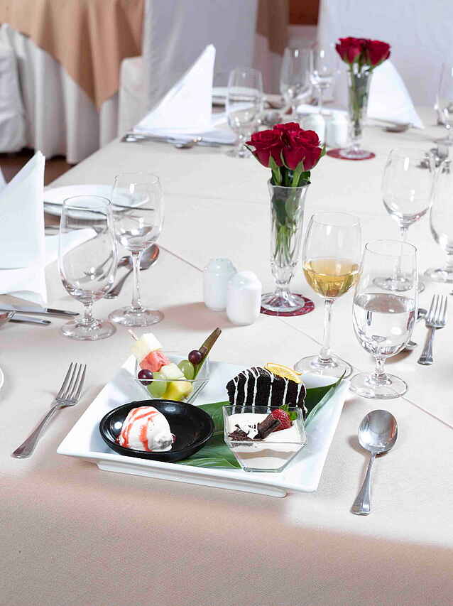 Man kann Übernachtung und Frühstück, Halbpension oder Vollpension buchen. Das Restaurant ist bemerkenswert stilvoll und bietet exquisite Küche.