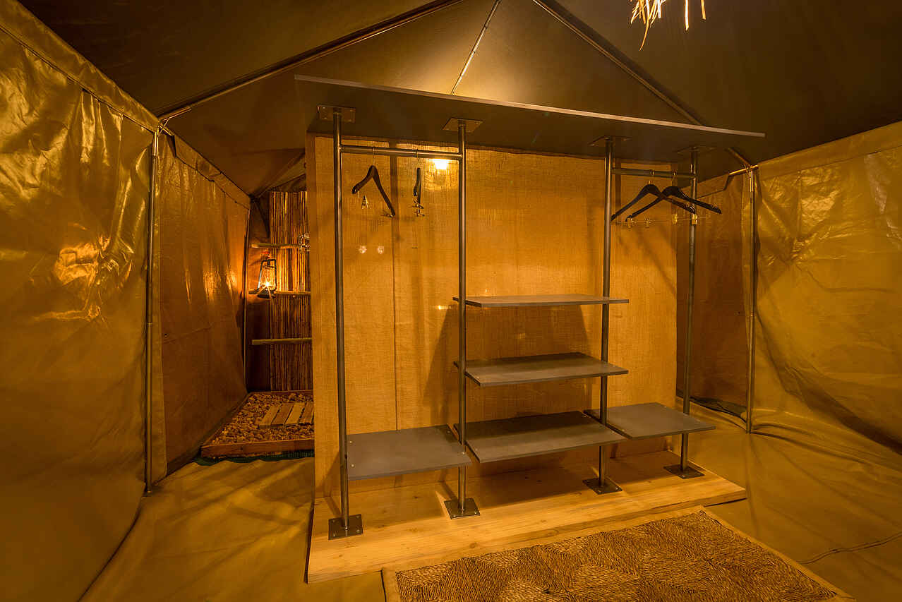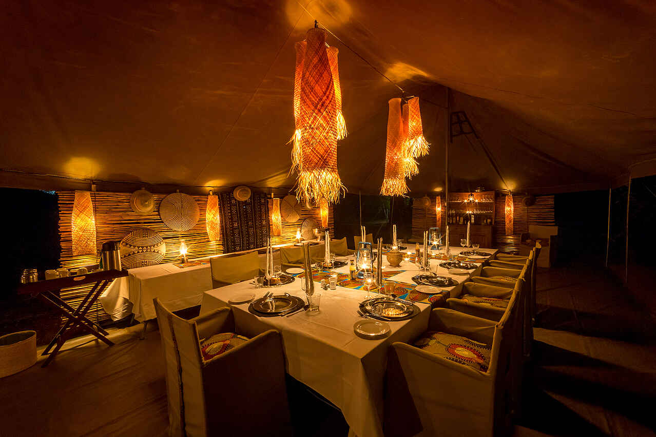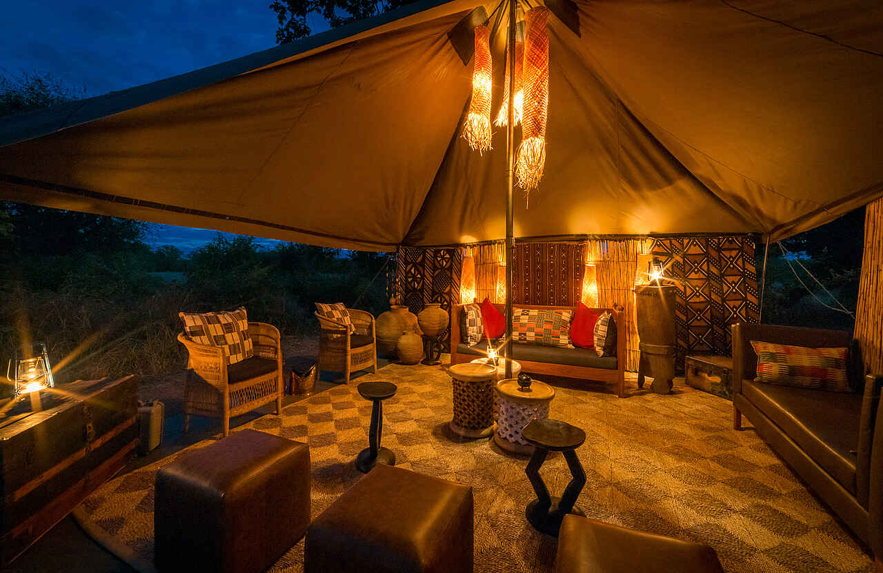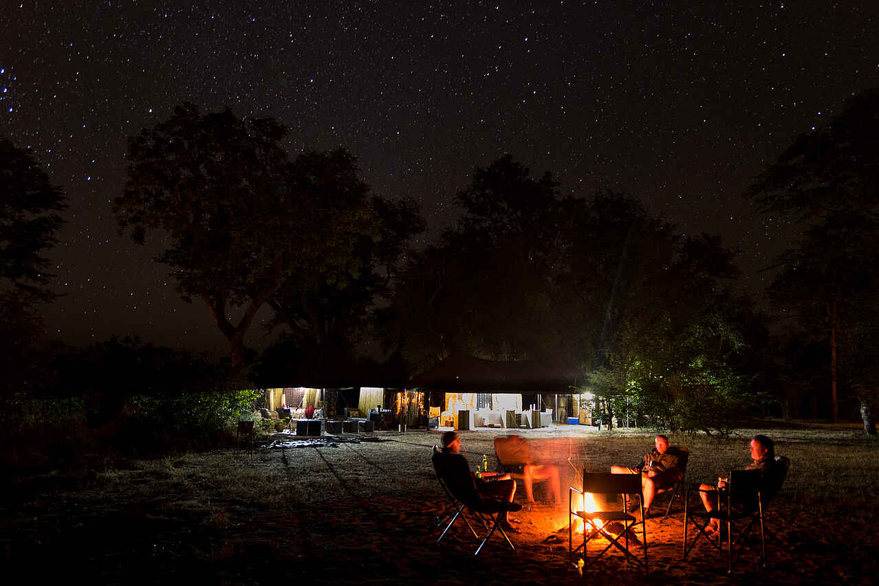 Der Hauptwohnbereich im Mittelpunkt des Camps besteht aus Ess-, Bar- und Loungebereich und einer offenen Feuerstelle mit einem besonders guten Blick auf die Sterne. Es gibt eine generatorbetriebene Ladestation im Essbereich. Hier können Kamera und elektrische Geräte aufgeladen werden. Es gibt keine Lademöglichkeiten in den Zelten. Im Camp gibt es kein Wi-Fi und kein Mobilfunksignal.