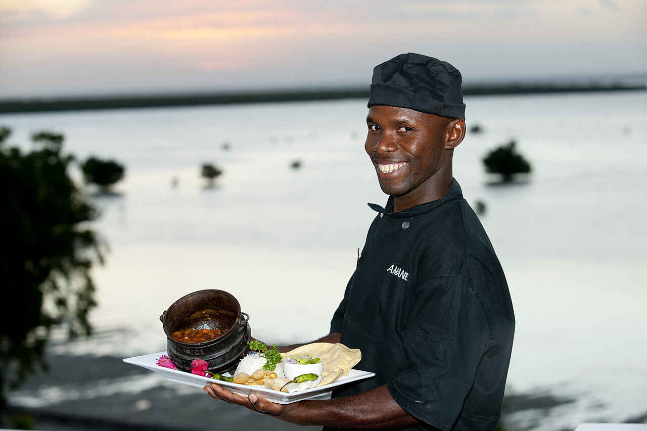 Vollpension mit internationalen und typischen Gerichten aus Mosambik. Gespeist wird entweder privat auf der eigenen Veranda, in der Privatsphäre entlegener Orte der Natur wie der Sandbank oder der alten Festung oder in den Speisebereichen der Lodge. Das Dinner wird auf der Dachterrasse der Bela Vista Lounge serviert. Berühmt ist die Ibo Island Lodge für seine hervorragenden Krabbengerichte. Dazu gibt es exzellente importierte Weine. Auf spezielle Wünsche und Unverträglichkeiten wird gerne eingegangen.