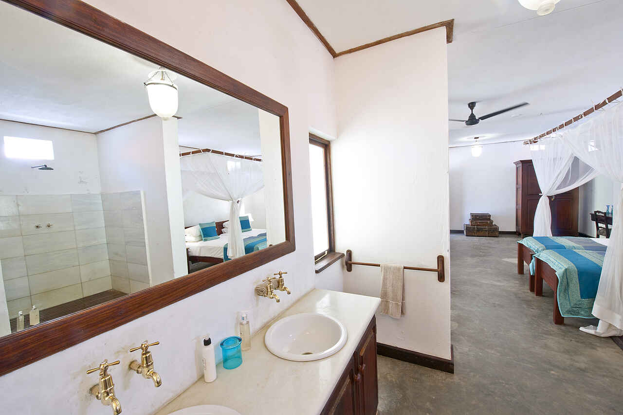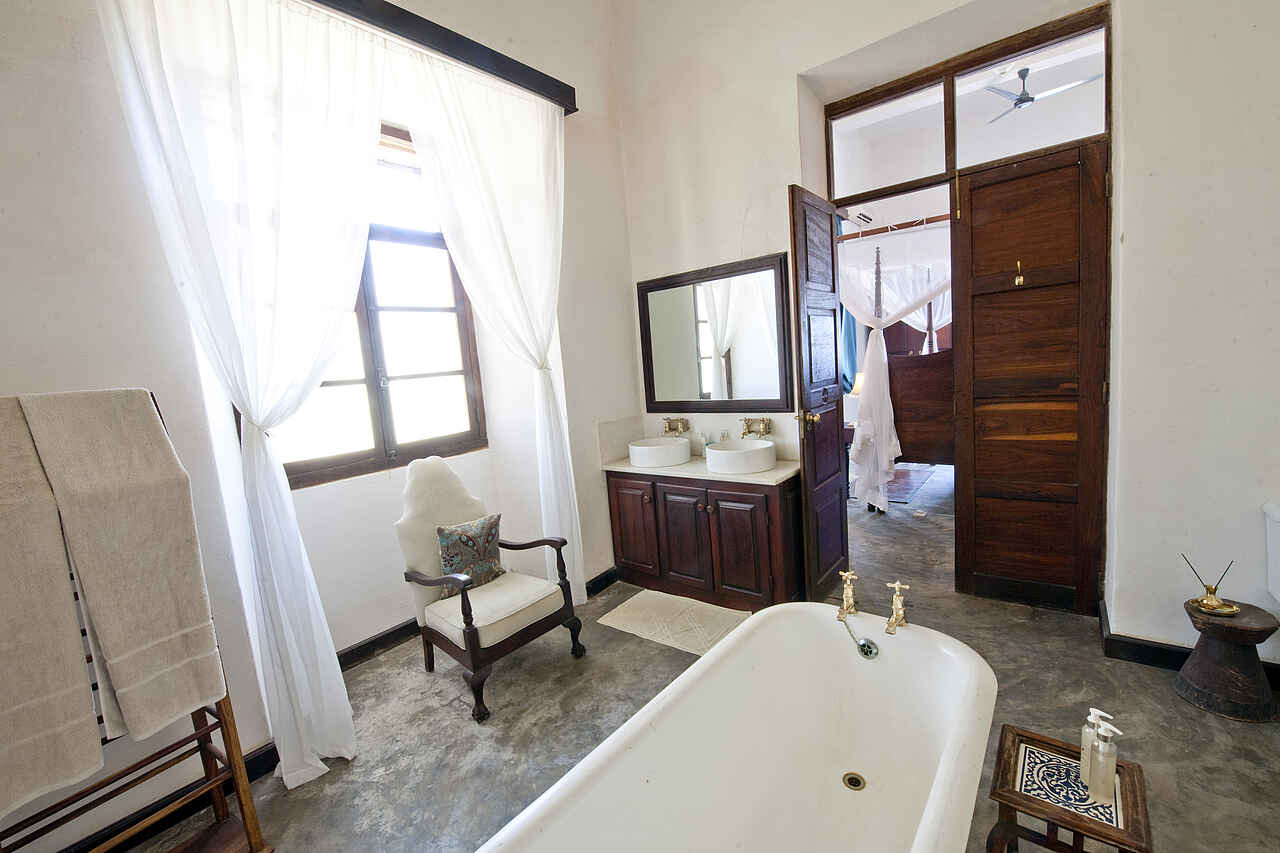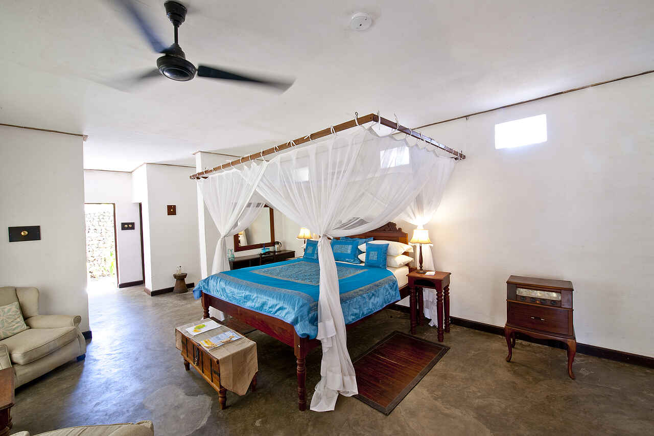 Insgesamt gibt es 14 Zimmer von denen 5 über direkten Meerblick verfügen, 6 haben einen eigenen Zugang zu den Gärten und 3 sind sog. historische Zimmer mit Augenmerk auf die alte Architektur. Die individuell gestalteten Zimmer bieten Korallenmauern, edles Holz wie Teak und Mahagoni, opulente Details wie ein Safe im Piratenstil oder Kissen aus Seide. Neben dem Schlafraum mit großem King-Size oder Twin-Bett gibt es Lounges, eigene Veranden mit Echtholz-Möbeln, en-suite Badezimmer mit Waschbecken, Dusche, Badewanne, Spültoilette und fließend Kalt- und Warmwasser sowie Klimaanlage, Ventilator, Moskitonetz und ein morgendlicher Tee- und Kaffeeservice. Die Paradiso-Villa umfasst 5 Schlafzimmer mit 5 en-suite Badezimmern, einem eigenen Pool, Garten, großer Lounge, Chef, Butler und eigener Dhau mit vollständiger Crew. Wäscheservice inklusive.