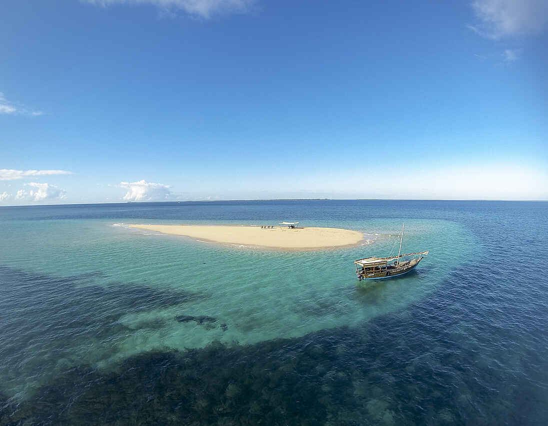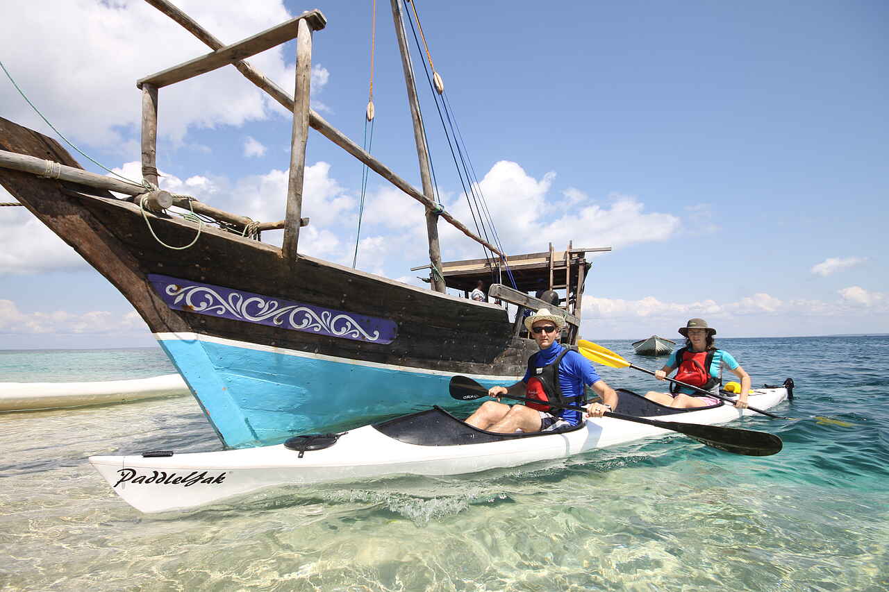 Ein Highlight ist das mobile Insel-Hopping mit einer traditionellen Dhau und einem Kayak. Es wird auf einsamen tropischen Inseln gezeltet und der Chefkoch bekocht die Gäste am Lagerfeuer. - Täglich bringen Boot-Transfers die Gäste zu einer Sandbank mitten im Meer um die Natur zu genießen oder für ein privates Dinner. - Kulturelle Ausflüge reichen thematisch von der alten Geschichte mit dem Besuch geschichtsträchtiger Stätten bis hin zu Wanderungen in belebte Dörfer mit aktiver Teilnahme am Dorfgeschehen. - Taucher kommen in den umliegenden Gebieten der Insel voll auf ihre Kosten und auch eine mobile Insel-Hopping Tauch-Safari ist möglich. - Weitere Ausflüge sind Delphin-Tour, Silberminen, Kayaken, Schnorcheln, Vogelbeobachtung, Nacht-Touren oder Segelausflüge.