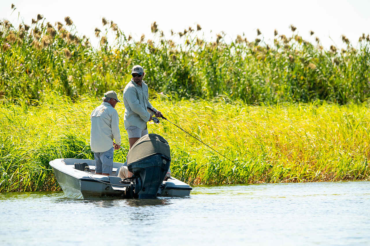 Die Ichingo Chobe River Lodge bietet ein Safari-Erlebnis mit klarem Fokus auf Aktivitäten am Wasser. Zu den Höhepunkten zählen motorisierte Bootsfahrten entlang des Chobe River, bei denen Elefanten, Flusspferde, Krokodile und zahlreiche Vogelarten beobachtet werden können. Besonders gefragt sind geführte Angeltouren - der Fluss gilt als eines der besten Reviere für Tigerfische und Brassen. Es stehen Fliegen- und Spinnfischen zur Auswahl, begleitet von erfahrenen Guides und mit bereitgestellter Ausrüstung.