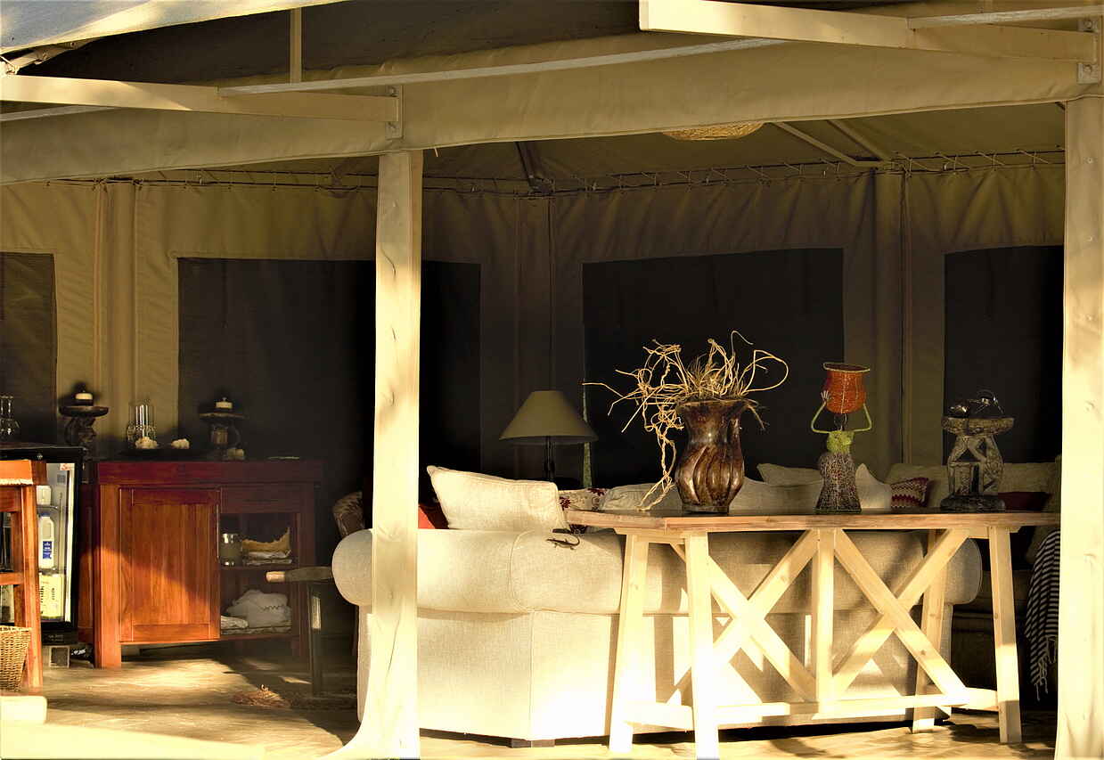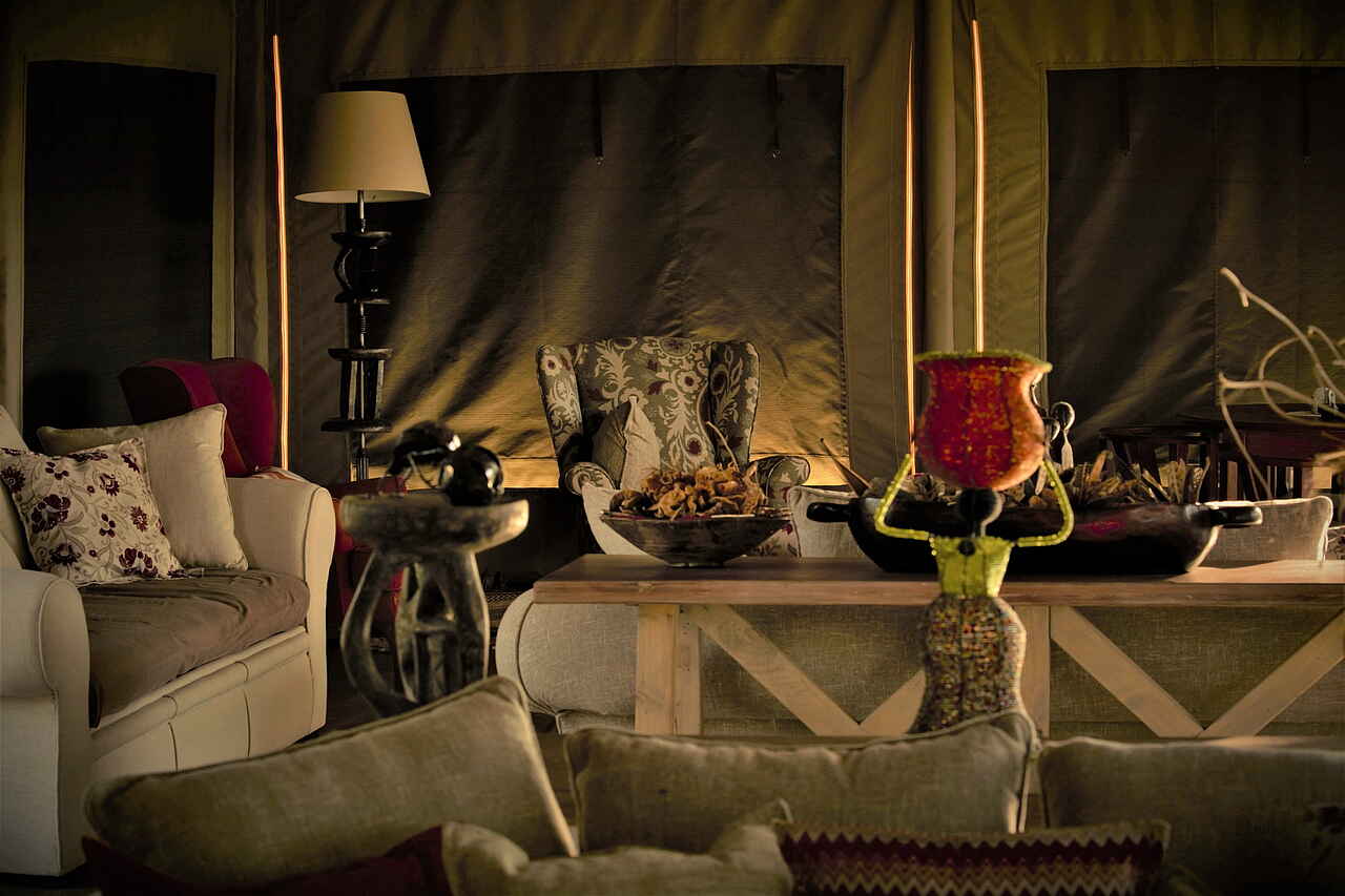 Es gibt ein Hauptzelt, in dem sich eine Lounge mit bequemen Sitzmöbeln und einer Bar befindet. Von dort überblickt man die Ingwe Pan. Die Mahlzeiten werden an Esstischen meist unter freiem Himmel serviert.