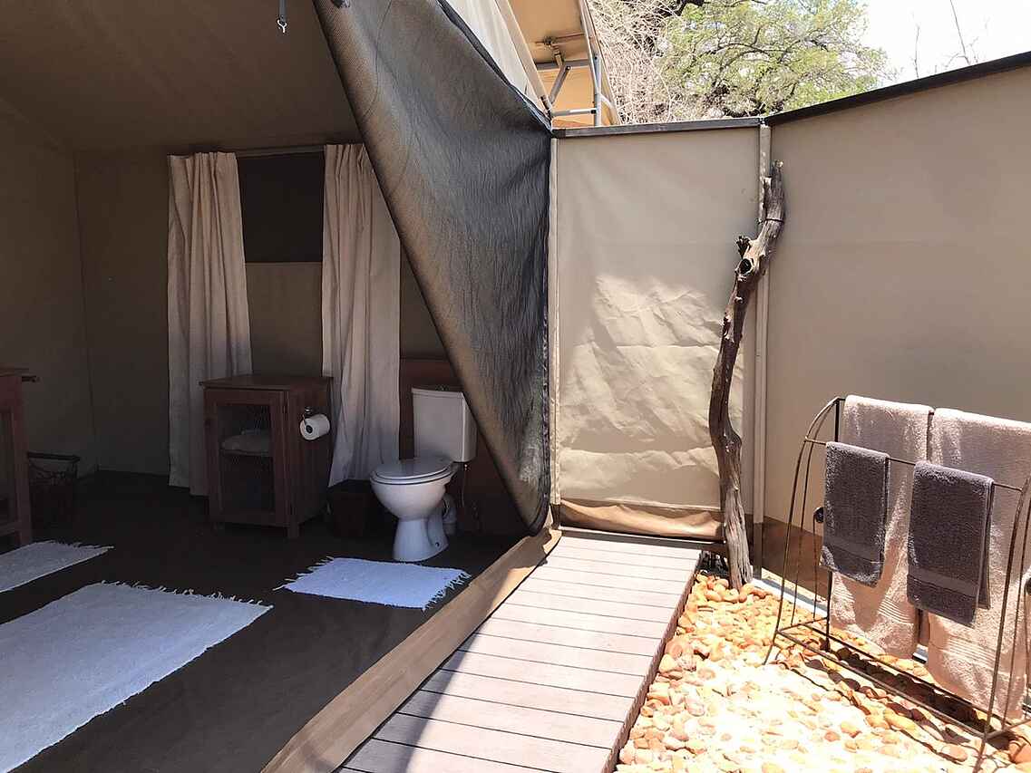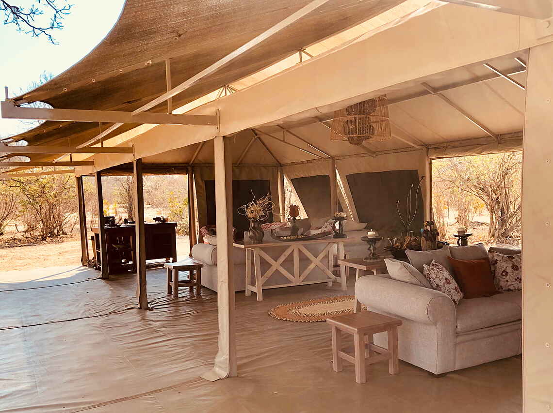 8 Leinwandzelte mit privaten Bädern stehen unter Bäumen am Rand der Ingwe Pan. Zelt Nr. 2 ist rollstuhltauglich. Alle Zelte verfügen über Doppelbetten, private Bäder mit Indoor- und Outdoordusche, Doppelwaschbecken, WC, sowie fließend Kalt- und Warmwasser. Kameras und Handys kann man in den Zelten aufladen. Zur Pfanne hin haben die Zelt, die leicht erhöht auf Plattformen stehen eine kleine Veranda. Es gibt einen kleinen Schreibtisch mit Stuhl, sowie Regiesessel auf der Veranda.