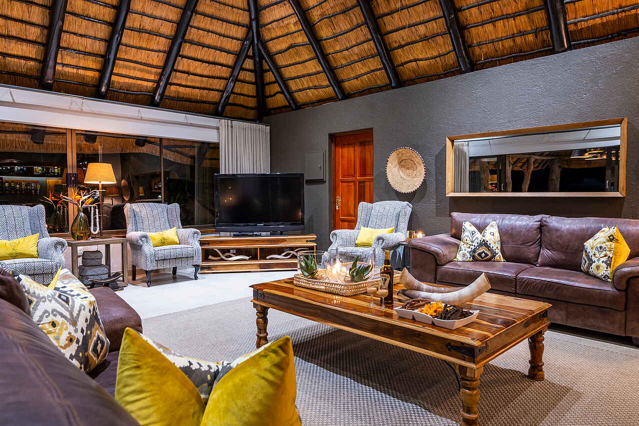 Große strohgedeckte Hauptlodge mit hohem Dachstuhl. Ein geschlossener Haupttrakt mit zwei Seitenflügeln als große Veranden in Blickrichtung Sabi River. Mit großer Lounge im dezenten, zeitgenössischen Design, zusätzlich kleine Lounge, zudem zwei große Veranden für Dinning und Entspannung; zusätzlich mit großer Terrasse; große Boma und Outdoordining möglich. Mit Bar, Souvenir Shop und großem unbeheiztem Pool und Gym. Elektrischer Strom und WiFi vorhanden.