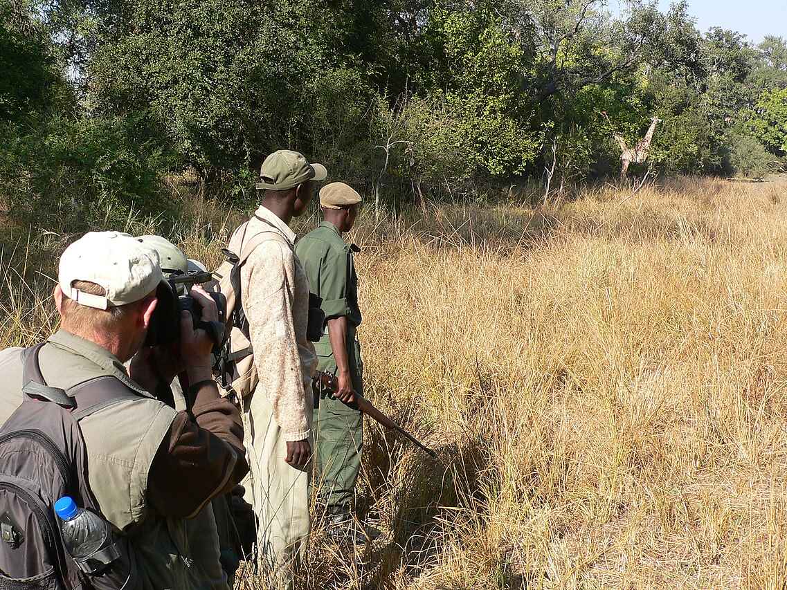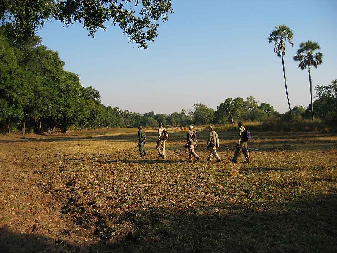 Tierreiche Region am Luangwa River, besonders geeignet für Walking Safaris durch die unberührte Buschlandschaft. Game Drives ebenfalls möglich. Tierbeobachtungen am Luangwa River. Im Paket „Bush Experience“ mit Kafunta River Lodge buchbar, mehrtägiger Erlebnistrip, Kombination aus abgeschiedenem Busch Camp und luxuriöser Lodge .