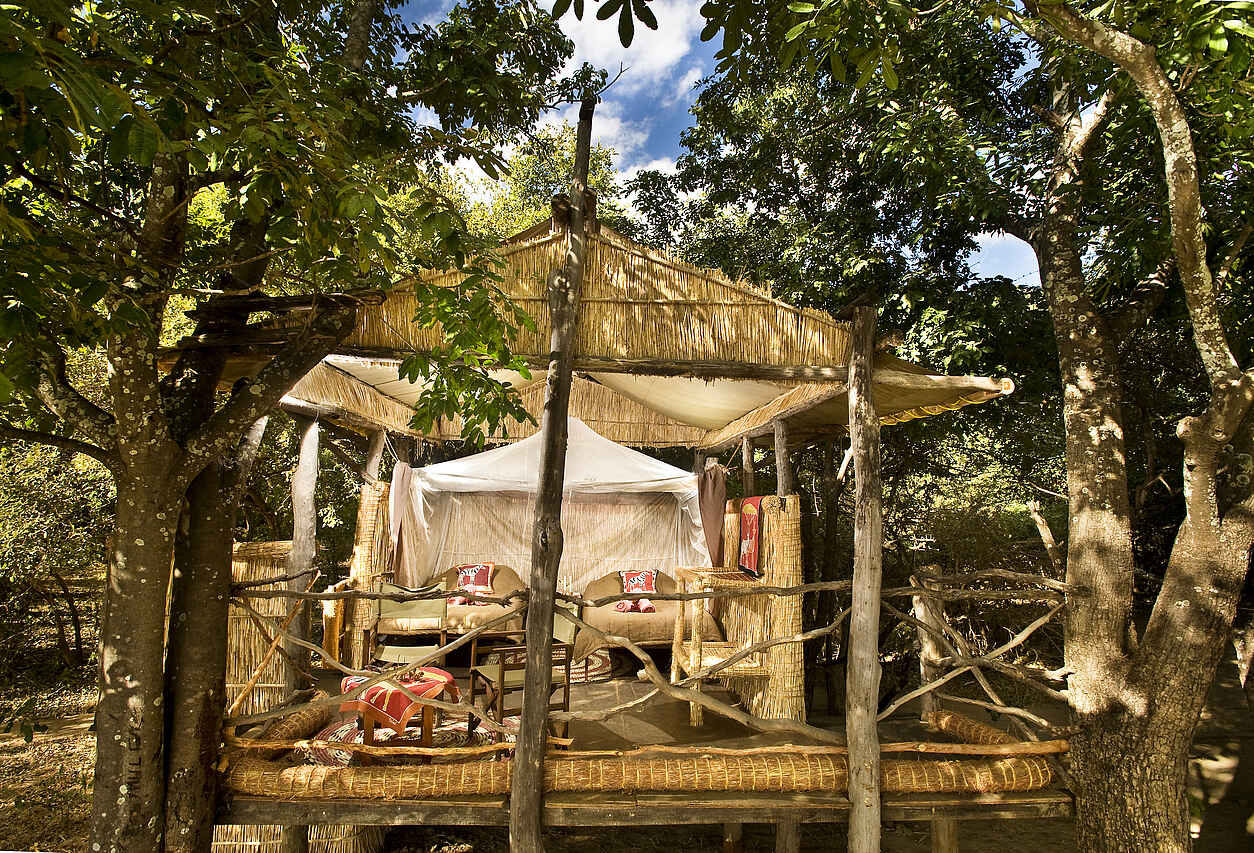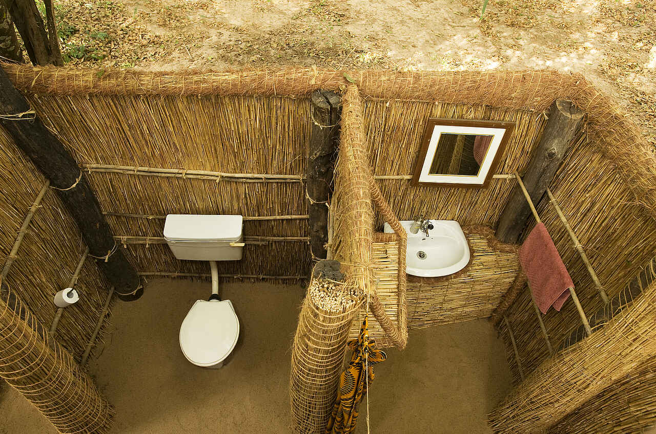 5 individuelle, auf Holzstelzen errichtete Chalets mit jeweils 2 Einzelbetten entlang des Luangwa Rivers, überwiegend aus Gras, Holz und Bambus erbaut. Offener Schlafbereich, Moskitonetze und Stauraum. En-Suite Badezimmer ohne Dach, mit Dusche und WC. Heiß- und Kaltwasser (Eimerduschen). Private Veranda mit Ausblick auf den Luangwa River. Wäscheservice, keine Elektrizität.