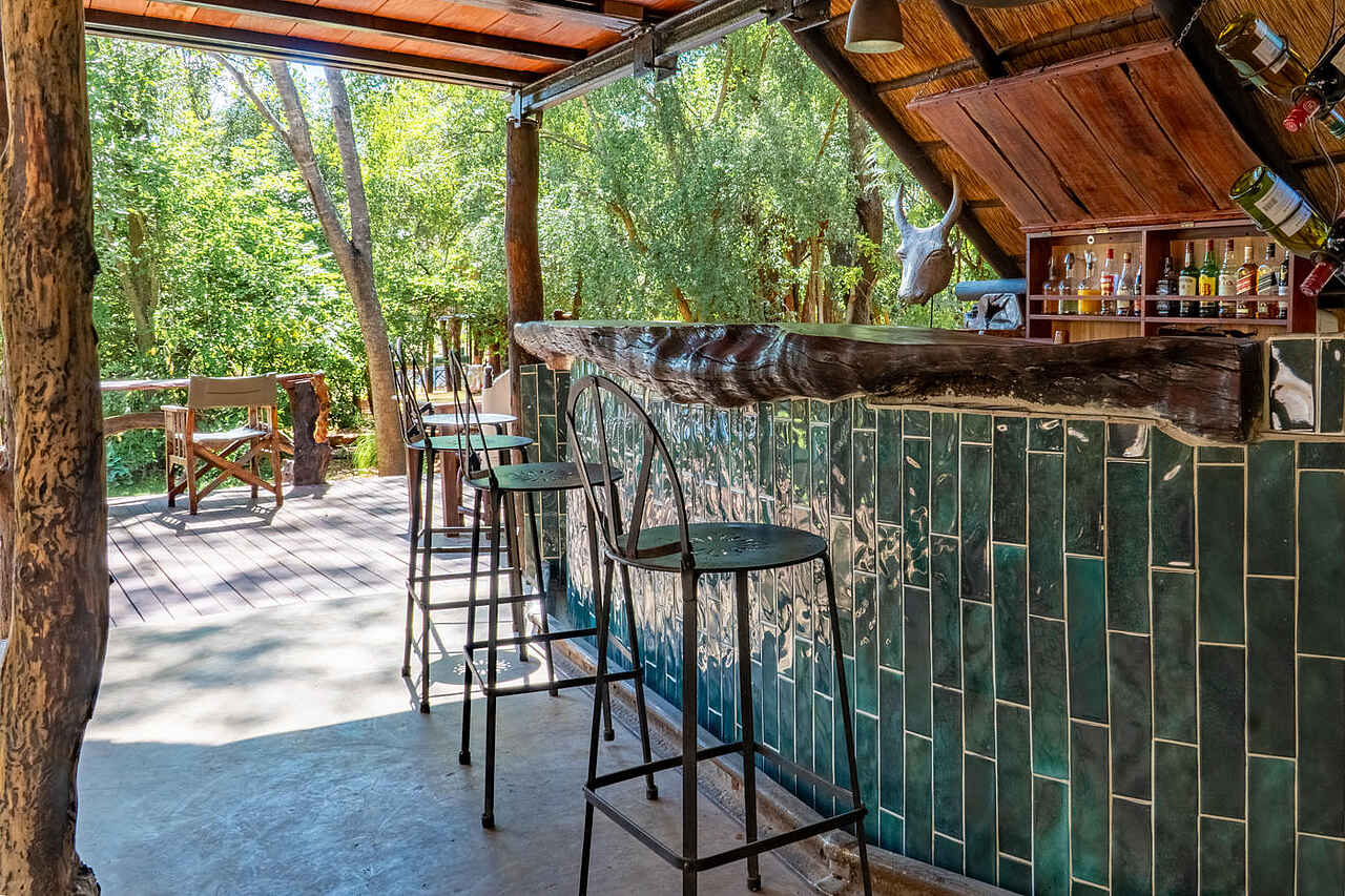 Im Zentrum der Ivory Lodge befindet sich ein großzügiger, offen gestalteter Hauptbereich mit Lounge, Speiseraum und Bar. Gemütliche Sofas, Naturmaterialien und große Fenster schaffen eine luftige und einladende Atmosphäre. Von der Terrasse blickt man direkt auf das Wasserloch, das regelmäßig von Wildtieren besucht wird. Ein schattiger Pool sorgt für Abkühlung zwischen den Aktivitäten. Besonders beliebt ist die versenkte Feuerstelle, an der man sich abends zu Sundownern und Geschichten aus dem Busch versammelt. Ein kleines Versteck für Tierbeobachtungen am Wasserloch ermöglicht besonders intime Naturmomente.