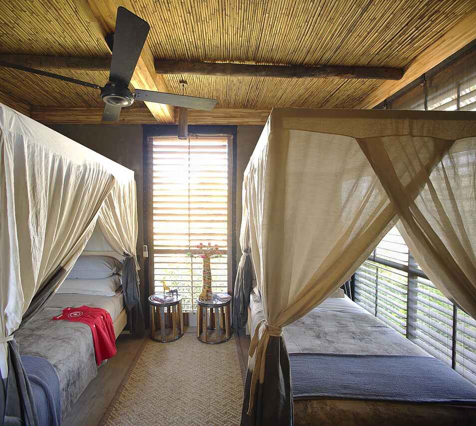 Das Jabali Private House bietet drei weitläufige Schlafzimmer, jeweils mit großem Doppelbett oder zwei Einzelbetten. Bequeme Sitzmöglichkeiten und großzügiger Stauraum schaffen ein angenehmes Wohngefühl. Jedes Zimmer verfügt über ein eigenes En-suite-Badezimmer mit Dusche, Doppelwaschbecken, Spültoilette, Handtüchern, Pflegeprodukten und Haartrockner. Minibar, Trinkwasser sowie Kaffee- und Teezubereitungsmöglichkeiten sind in allen Räumen vorhanden und runden den Komfort ab.