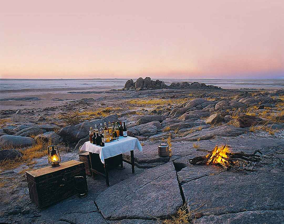 Zusätzlich werden Radtouren, Reitausflüge und Helikopterrundflüge angeboten. Ein weiteres Highlight ist der Besuch der historischen Stätte von Chapman’s Baobab, einst einer der drei größten Bäume Afrikas und ein Nationaldenkmal Botswanas. Sternenbeobachtungen und Besuche bei den Flamingos während der Regenzeit runden das Angebot ab. Nach einem ereignisreichen Tag sorgen Spa-Behandlungen direkt im eigenen Zelt für Entspannung.
