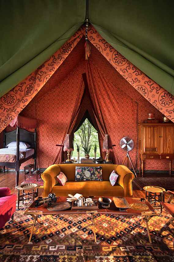 <die komfortablen wohnbereiche sind mit einem sofa und tagesbett ausgestattet. jedes zelt verfügt über ein en-suite-badezimmer waschbecken sowie innen- außenduschen. große veranden samtbezogenen liegen eigenen tauchbecken runden die annehmlichkeiten ab.></die>
