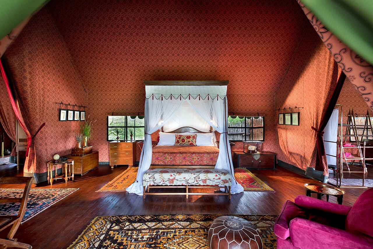 Jack's Camp ist ein einzigartiges Safari-Ziel in der unberührten Weite der Makgadikgadi-Salzpfannen in der Kalahari-Wüste in Botswana. Dieses luxuriöse Juwel verbindet abgeschiedene Natur mit dem nostalgischen Charme der 1940er-Jahre. Mit nur neun Luxuszelten bietet das Camp ein exklusives und intimes Ambiente. Die prächtigen Zelte, die teils an Beduinenzelte erinnern, sind mit afrikanischen und kolonialen Elementen in üppigen Rot- und Brauntönen ausgestattet. Nach aufregenden Pirschfahrten oder Wanderungen mit San-Stammesangehörigen können sich Gäste im eleganten Pool-Pavillon entspannen und den Tag Revue passieren lassen.