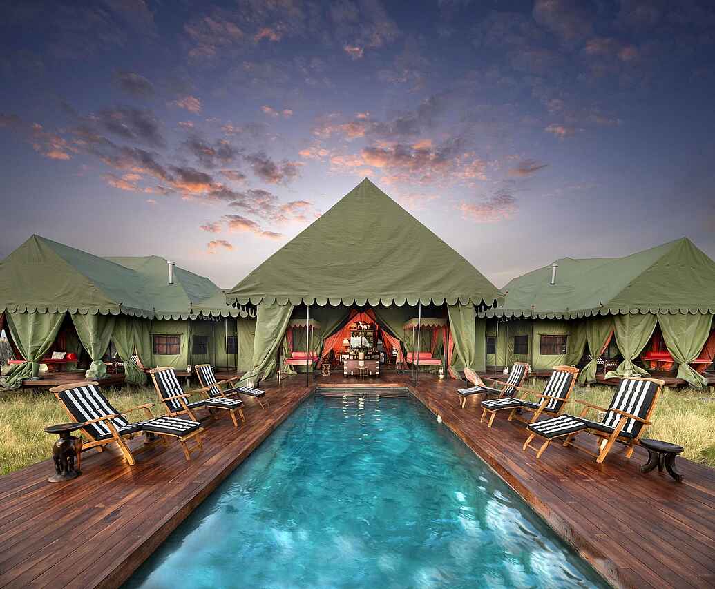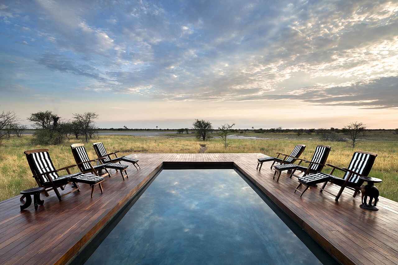 Auf der großzügigen Veranda, die mit Tagesbetten ausgestattet ist und an einen großen Swimmingpool grenzt, genießt man einen atemberaubenden Blick auf die weiten Landschaften der Makgadikgadi-Salzpfannen. Im gesamten Camp gibt es kostenfreien WLAN-Zugang, und als wäre das alles nicht genug, kann man auch sämtliche Einrichtungen des Hauptcamps von Jack’s Camp nutzen, darunter den Pool-Pavillon, das Tee-Zelt und das naturhistorische Museum.