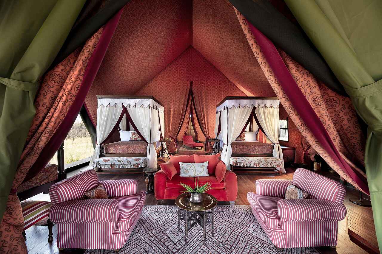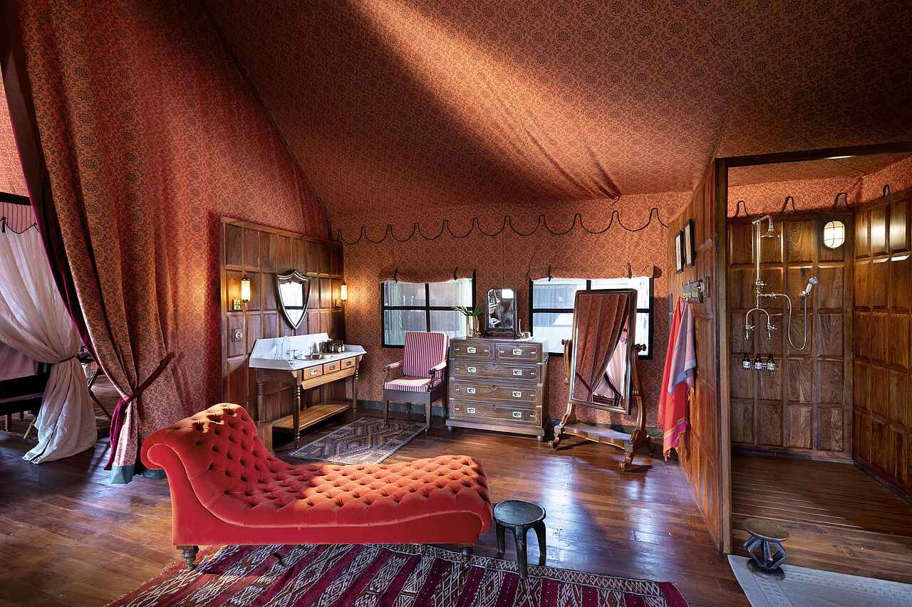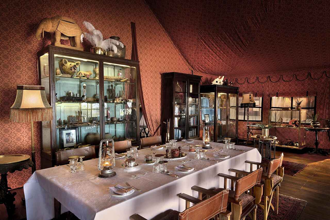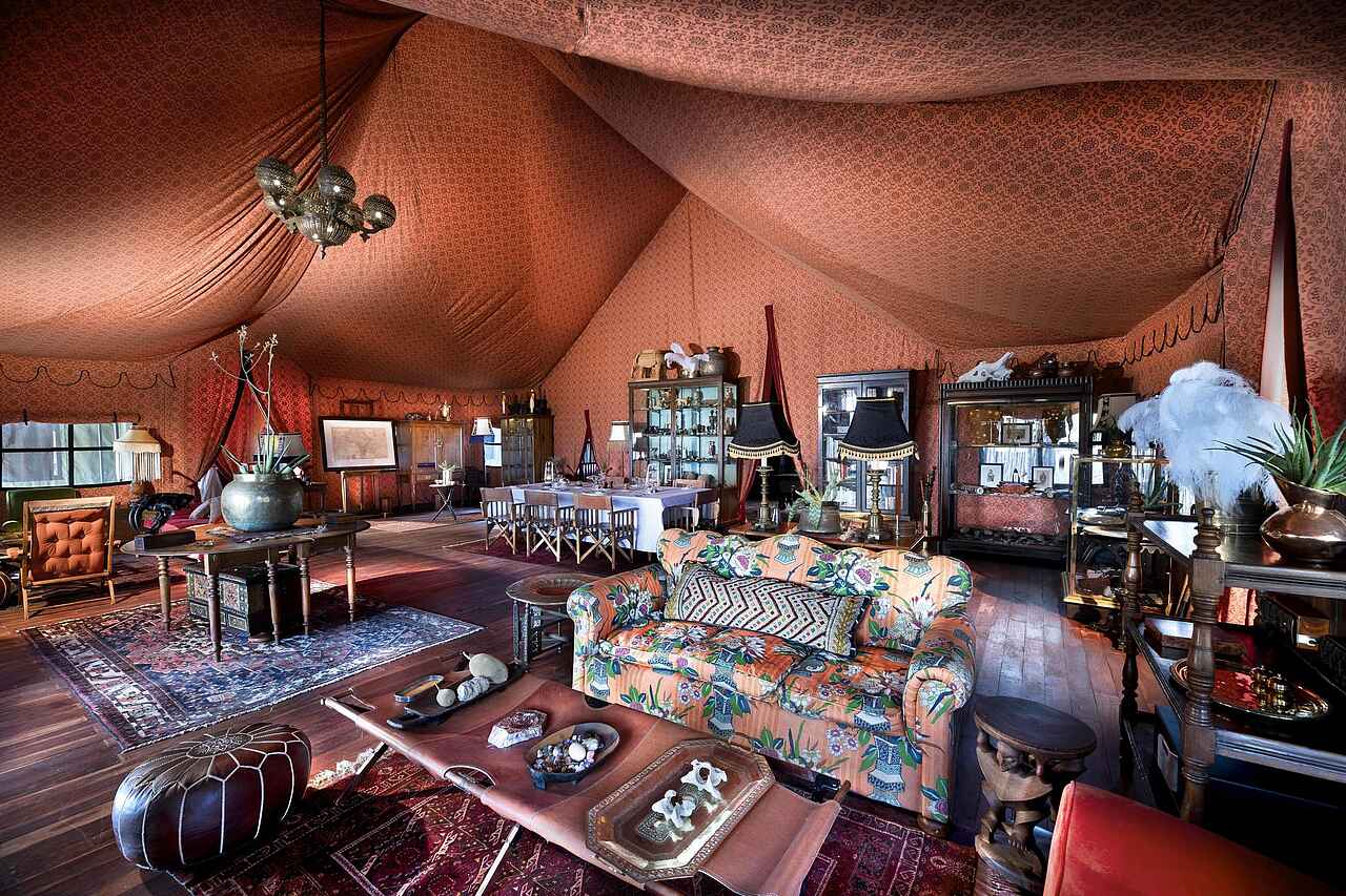 Jack’s Private Camp ist eine eigenständige Zeltvilla, mit zwei großzügigen Schlafzimmern, die auf beiden Seiten eines geräumigen zentralen Wohnbereichs liegen. In diesem Bereich befinden sich eine gemütliche Lounge mit bequemen Sofas, exotischen Teppichen und antiken Möbeln sowie ein eleganter Essbereich. Eine gut sortierte Bar bietet eine Auswahl an erlesenen Getränken. Zusätzlich stehen den Gästen eine gut ausgestattete Bibliothek und ein Kuriosenkabinett zur Verfügung.