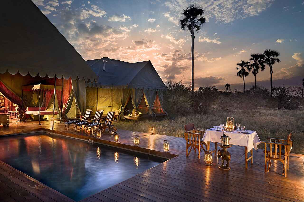 Das Camp liegt rund 100 Meter vom berühmten Jack’s Camp entfernt und zeichnet sich durch seine elegante, nostalgische Atmosphäre aus, die an die Zeiten der großen Safari-Expeditionen erinnert. Gäste können hier atemberaubende Sonnenuntergänge und sternenklare Nächte erleben, während sie von einer vielfältigen Tierwelt umgeben sind, darunter seltene braune Hyänen und majestätische Wüstenelefanten. Die persönliche Betreuung und die maßgeschneiderten Aktivitäten machen Jack's Private Camp zu einem unvergesslichen Erlebnis.