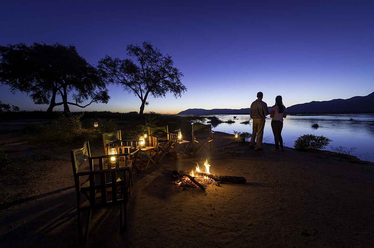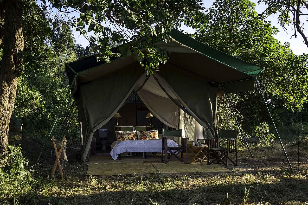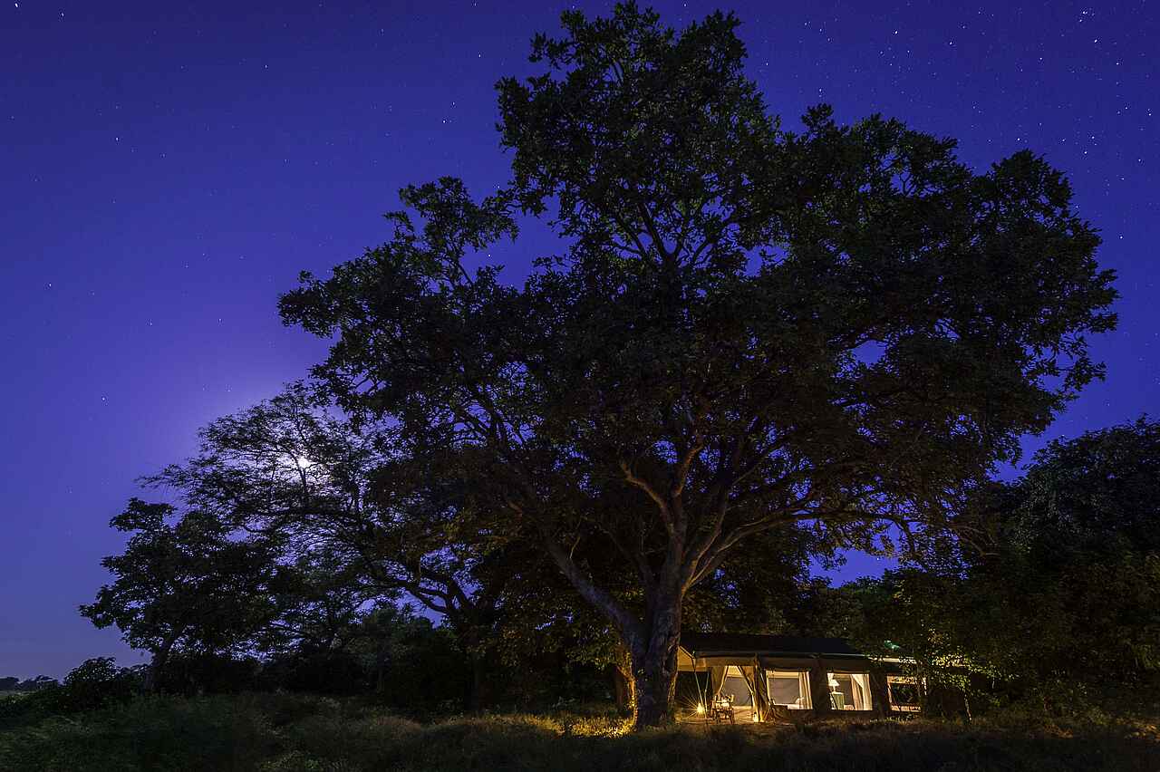 Das Zeltcamp wurde in Ufernähe des Sambesi im Norden Simbabwes unter Mahagonibäumen errichtet. Hier liegt es an der natürlichen Flussgrenze zu Sambia inmitten des Mana Pools National Parks, der zum UNESCO-Weltnaturerbe zählt.