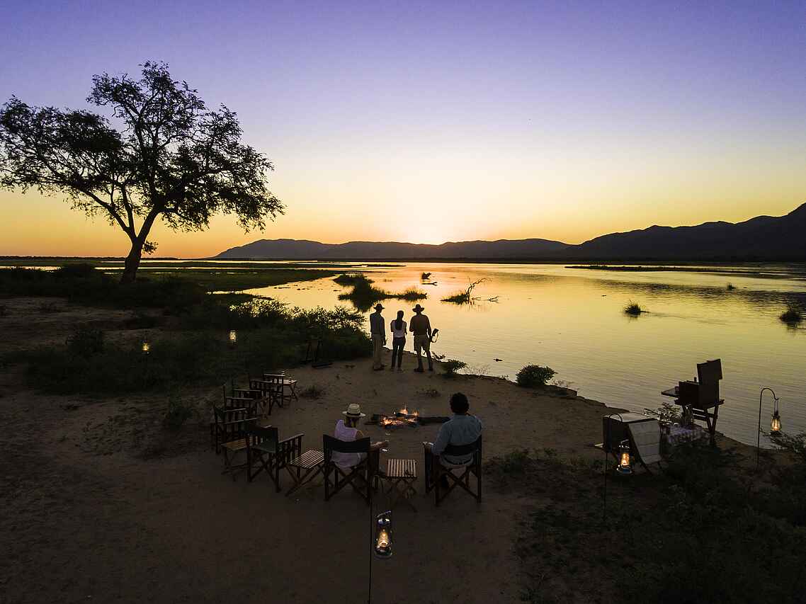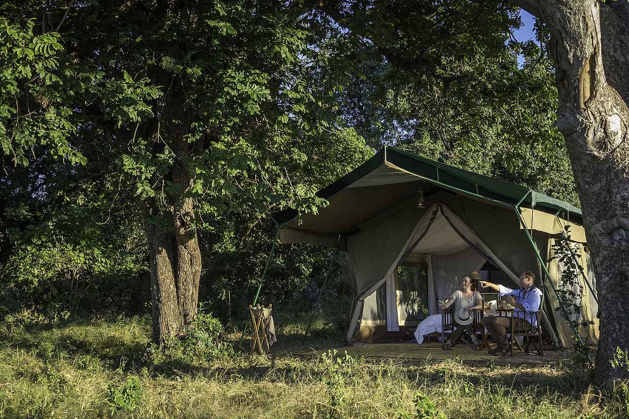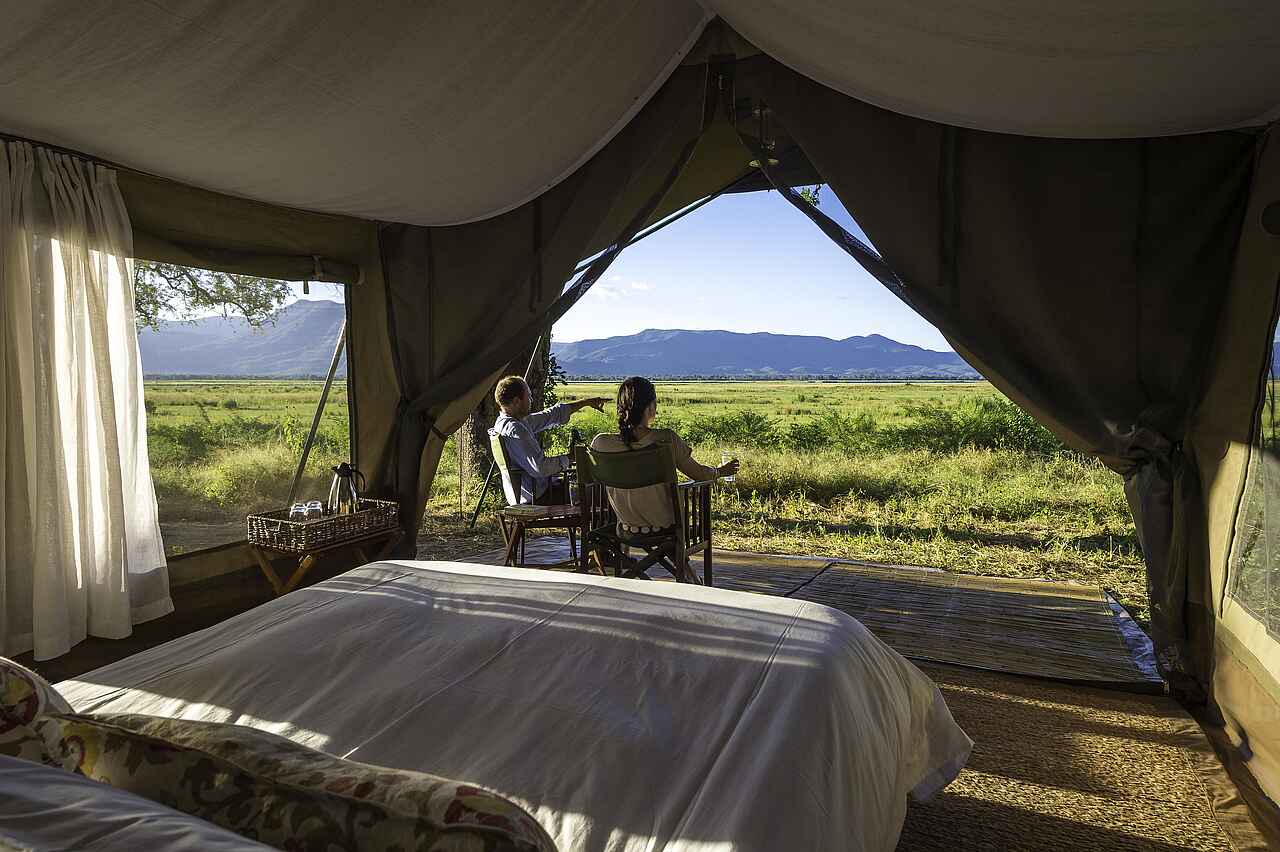Das Zeltcamp wurde in Ufernähe des Sambesi im Norden Simbabwes unter Mahagonibäumen errichtet. Hier liegt es an der natürlichen Flussgrenze zu Sambia inmitten des Mana Pools National Parks, der zum UNESCO-Weltnaturerbe zählt.