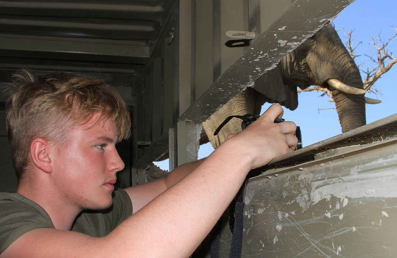 Pirschfahrten mit gut ausgebildeten Guides, morgens, nachmittags und auch nachts; Wanderungen in alten Elefantenspuren; Pump Runs; Beobachtungen aus einem speziellen Untergrundbau am Wasserloch heraus; Erkundung des Nationalparks mit dem Mountainbike