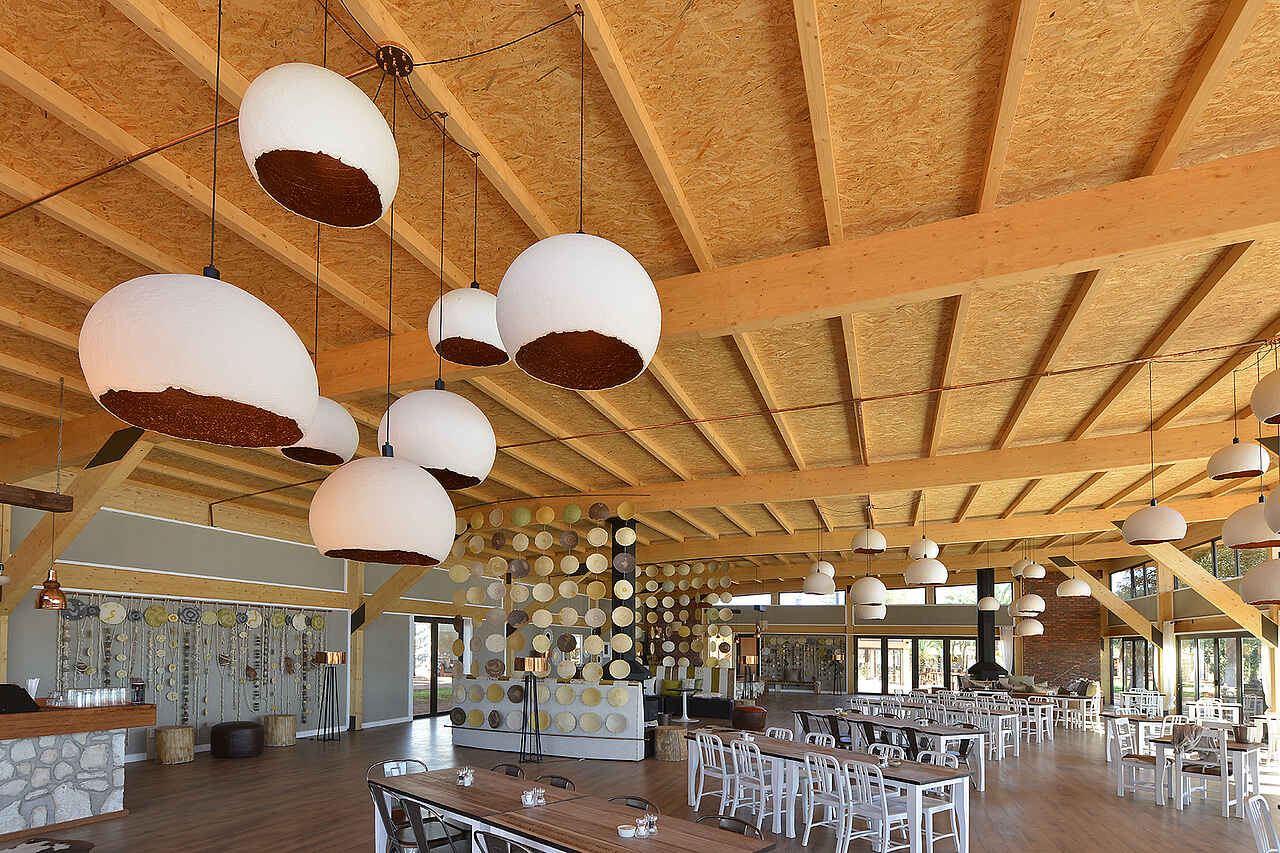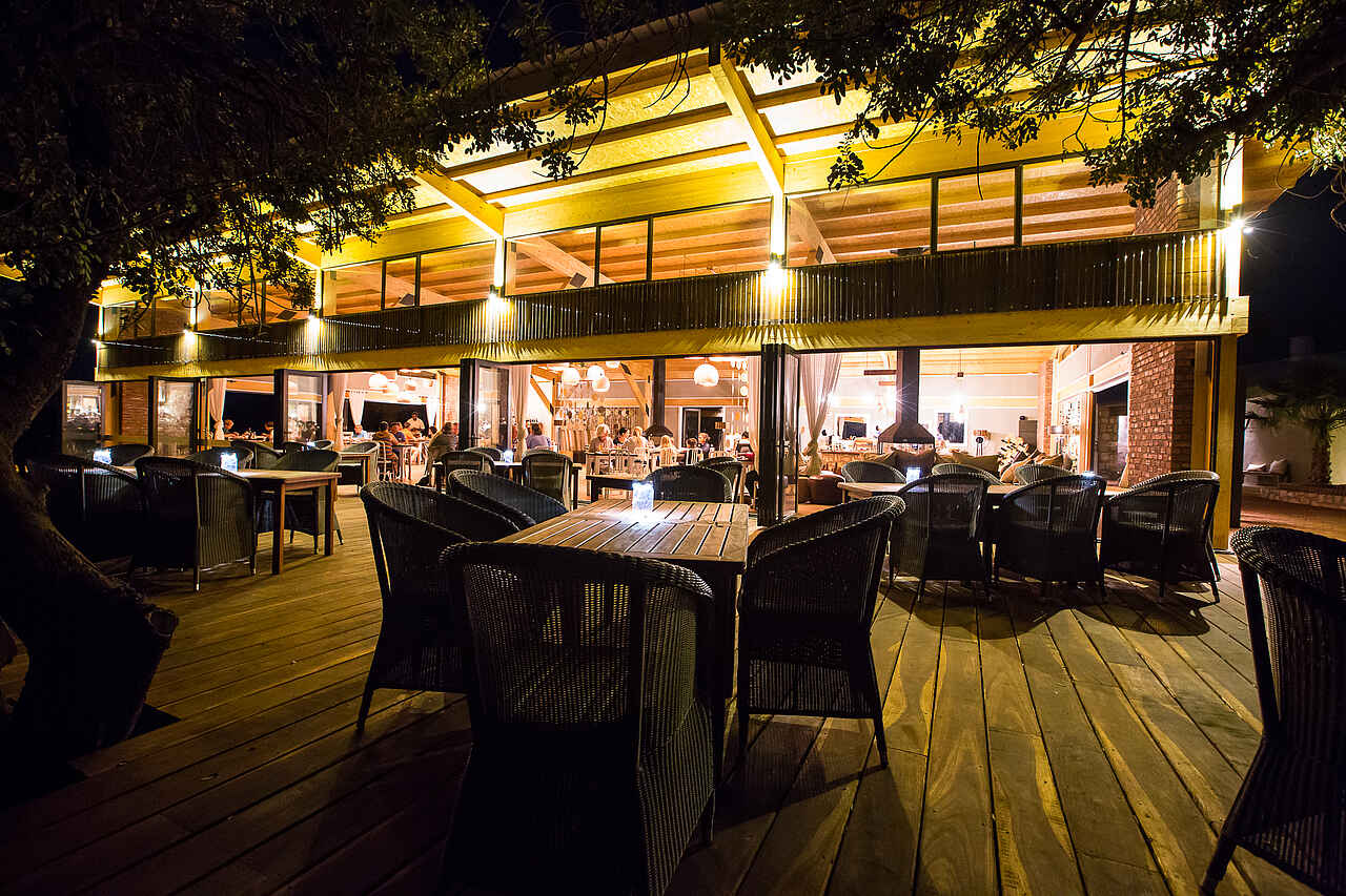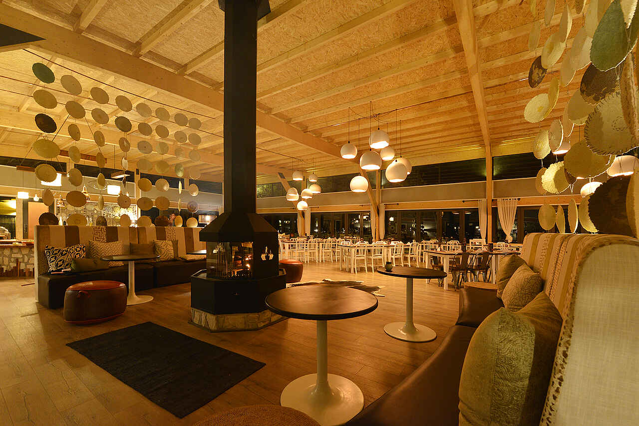 Der Sitzbereich um die offene Feuerstelle herum ist ein zentraler Bereich der Lodge. Gäste können in dem nahen Restaurant Speisen einnehmen oder in dem Shop neben der Rezeption Souvenirs kaufen. In einem separatem Raum befindet sich die Bar mit einer weiteren, kleineren Feuerstelle, an welcher die Besucher sich am Abend wärmen können. Alternativ verbringen die Gäste ihre Zeit an einem der beiden Pools und lassen sich auf den dortigen Liegen nieder.