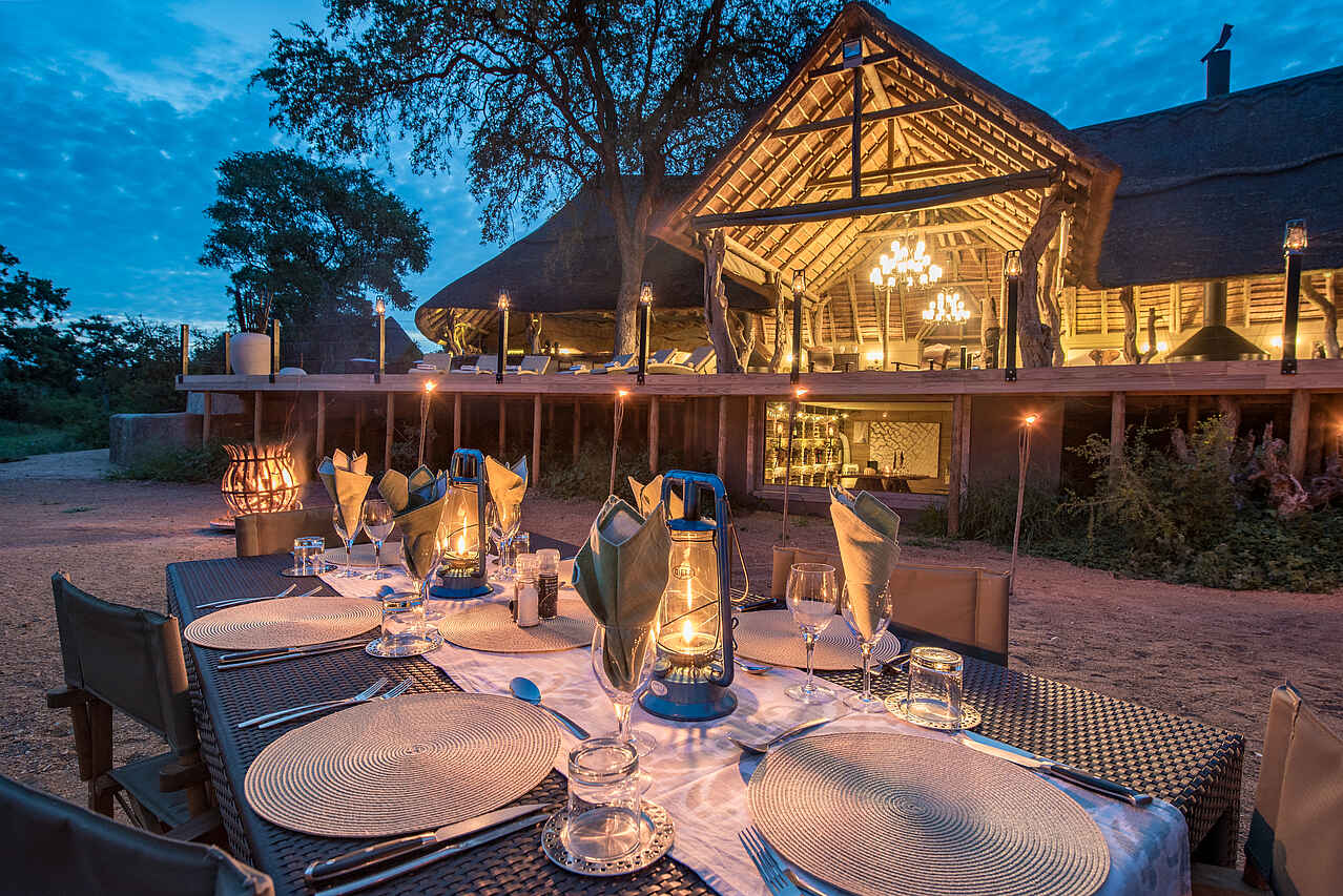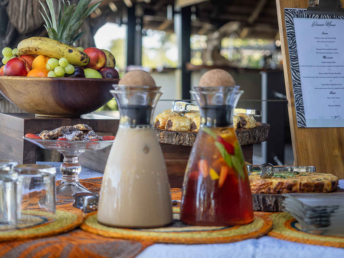 Die Küche der Lodge vereint internationale Gourmetgerichte mit authentischen afrikanischen Aromen. Frische, saisonale Zutaten aus der Region stehen im Mittelpunkt der kreativen Speisen. Das Frühstück wird als reichhaltiges Buffet oder à la carte serviert, während das Mittagessen eine Auswahl an leichten, aber raffinierten Gerichten bietet. Das Abendessen ist ein Highlight des Tages, oft als mehrgängiges Menü mit einer erlesenen Auswahl an südafrikanischen Weinen serviert. Ein weiteres Highlight ist das traditionelle Abendessen in der Boma - unter dem Sternenhimmel, am offenen Feuer, inmitten der afrikanischen Wildnis. Besondere kulinarische Erlebnisse wie Busch-Dinner oder private Abendessen auf der eigenen Terrasse sind ebenfalls möglich.