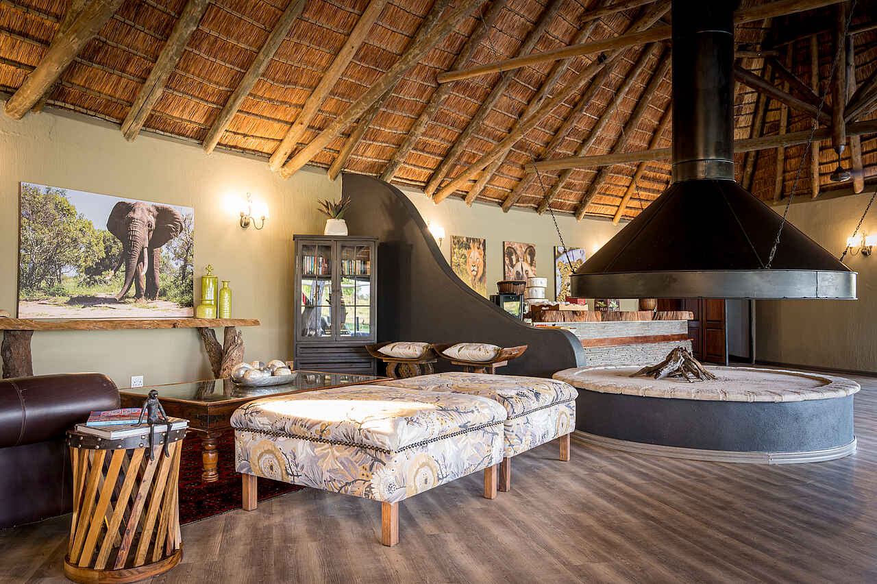 Die Lodge verfügt über eine offene Lounge mit Blick auf das Wasserloch, eine stilvolle Bar, eine Boma für traditionelle Abendessen am Feuer sowie einen Pool, in dem sich Gäste nach einem aufregenden Tag abkühlen können. Ein Spa-Bereich lädt zur Entspannung mit Massagen und anderen Anwendungen ein. Das Restaurant der Lodge serviert exquisite Gerichte, die mit frischen, regionalen Zutaten zubereitet werden. Gäste können ihre Mahlzeiten in der offenen Dining-Area mit Blick auf die Wildnis oder bei einem romantischen Dinner unter dem Sternenhimmel genießen.