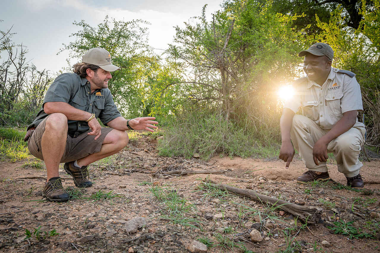 Zweimal am Tag brechen Gäste zu Pirschfahrten mit erfahrenen Guides und Trackern auf, am frühen Morgen und am späten Nachmittag. Die offenen Fahrzeuge bieten Komfort und Platz für sechs bis acht Personen. Die Guides kennen das Gebiet bestens und vermitteln spannendes Wissen über Tierverhalten, Spuren und das Ökosystem. Wer noch näher dran sein möchte, kann an geführten Buschwanderungen teilnehmen und die Natur zu Fuß erkunden. In der Lodge selbst lädt ein gut getarntes Hide zur Tierbeobachtung am Wasserloch ein. Für Kinder gibt es das Kubs-Programm, bei dem sie spielerisch lernen, wie man sich im afrikanischen Busch zurechtfindet.