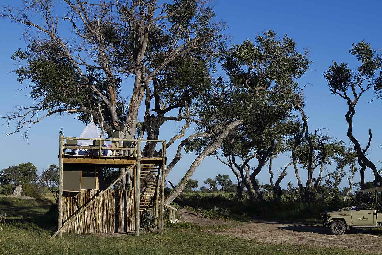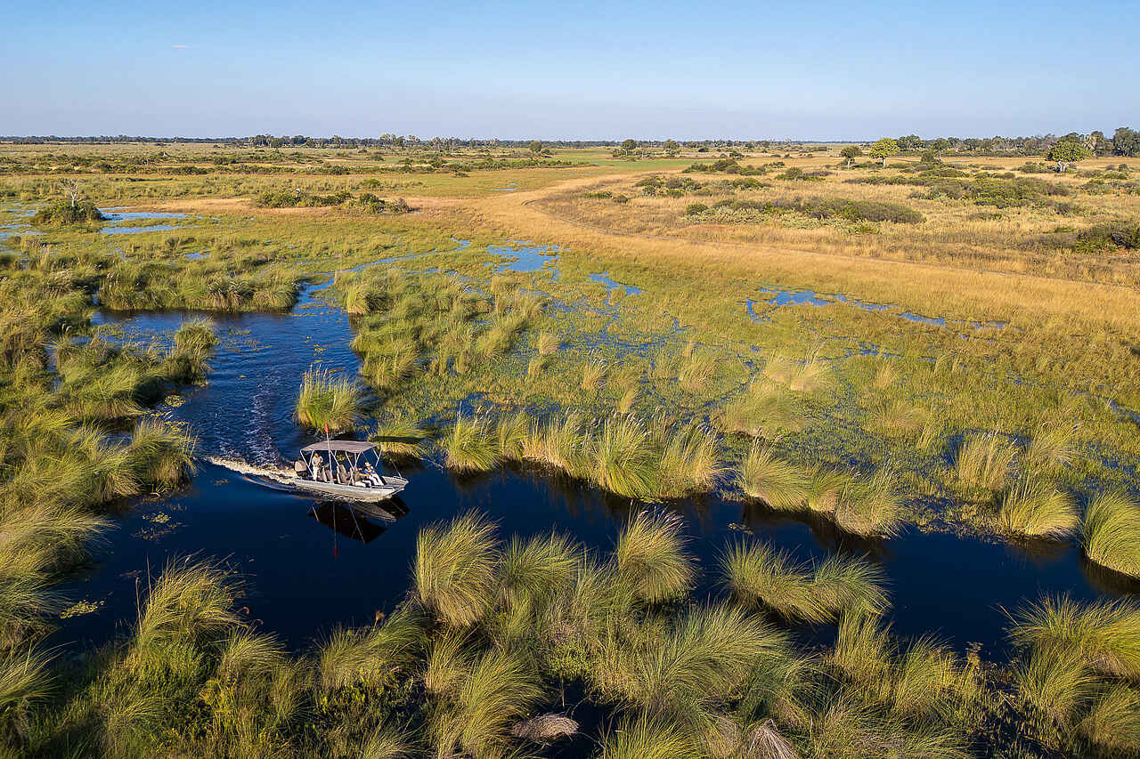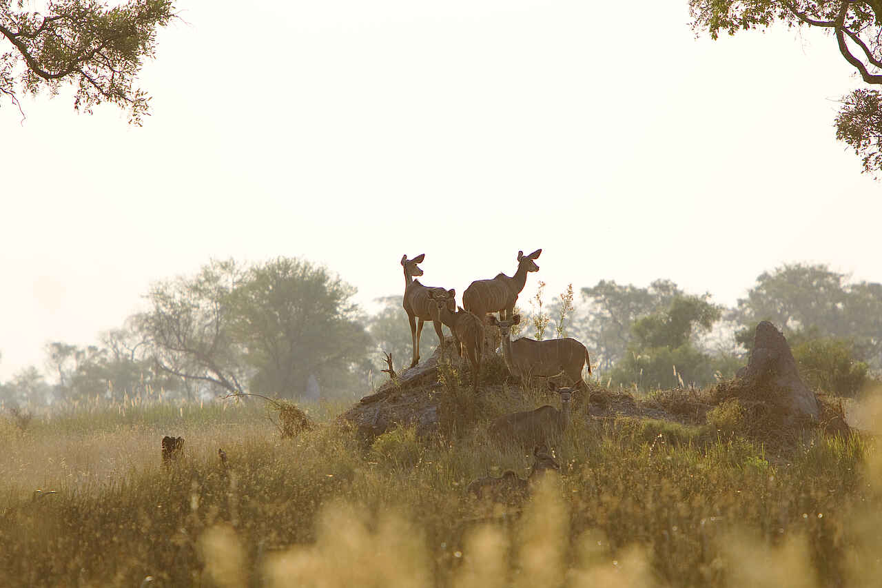 Das Kanana Nyana Camp befindet sich im Okavangodelta in Botswana nahe dem Moremi Wildreservat, oberhalb des Xudum River. Die erhöhte Position ermöglicht weite Ausblicke über Wasserläufe und offene Ebenen. Das Gebiet ist bekannt für konstante Tierbewegungen und vielfältige Lebensräume.