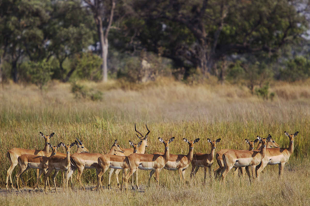 Das Kanana Nyana Camp liegt am Rand des Moremi Game Reserve im Okavangodelta und damit in einem Gebiet mit konstant hoher Wilddichte. Zwei Safari-Fahrzeuge stehen bereit, die Gästezahl pro Fahrzeug ist bewusst niedrig gehalten. So entstehen flexible Pirschfahrten mit viel Zeit für intensive Beobachtungen. Geführte Safaris am Morgen und am Nachmittag bilden den Kern des Programms. Die Guides kennen die Region rund um den Xudum River genau und reagieren auf aktuelle Tierbewegungen, statt starren Routen zu folgen. Je nach Wasserstand ergänzen saisonale Aktivitäten auf dem Wasser das Angebot. Die Kombination aus erfahrenem Guiding, geringer Fahrzeugauslastung und abwechslungsreicher Landschaft sorgt für starke Sichtungen und abwechslungsreiche Safaritage im Okavangodelta.