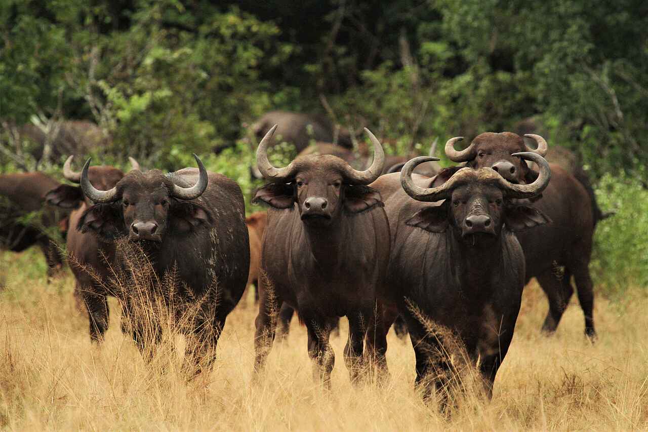 Löwen, Leoparden, Hyänen, Wildhunde, Elefanten, Gnu, Zebra, Impala, Wasserböcke, Elenantilopen, Kudu, Warzenschweine, Krokodile, Nilpferde, verschiedene Storcharten, Quelias, Meyers Parrot, Hornraben, verschiedene Greifvögel.
