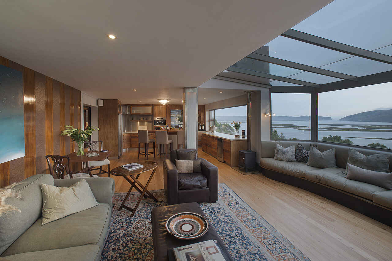 Knysna, rund 30 Fahrtminuten von Plettenberg entfernt, liegt im Süden Südafrikas an der Gardenroute an der Knysna Lagune, die Zugang zum Indischen Ozean hat. Das Kanonkop House liegt auf der bewaldeten Anhöhe Kanonkop Hill, die die Lagune überblickt.