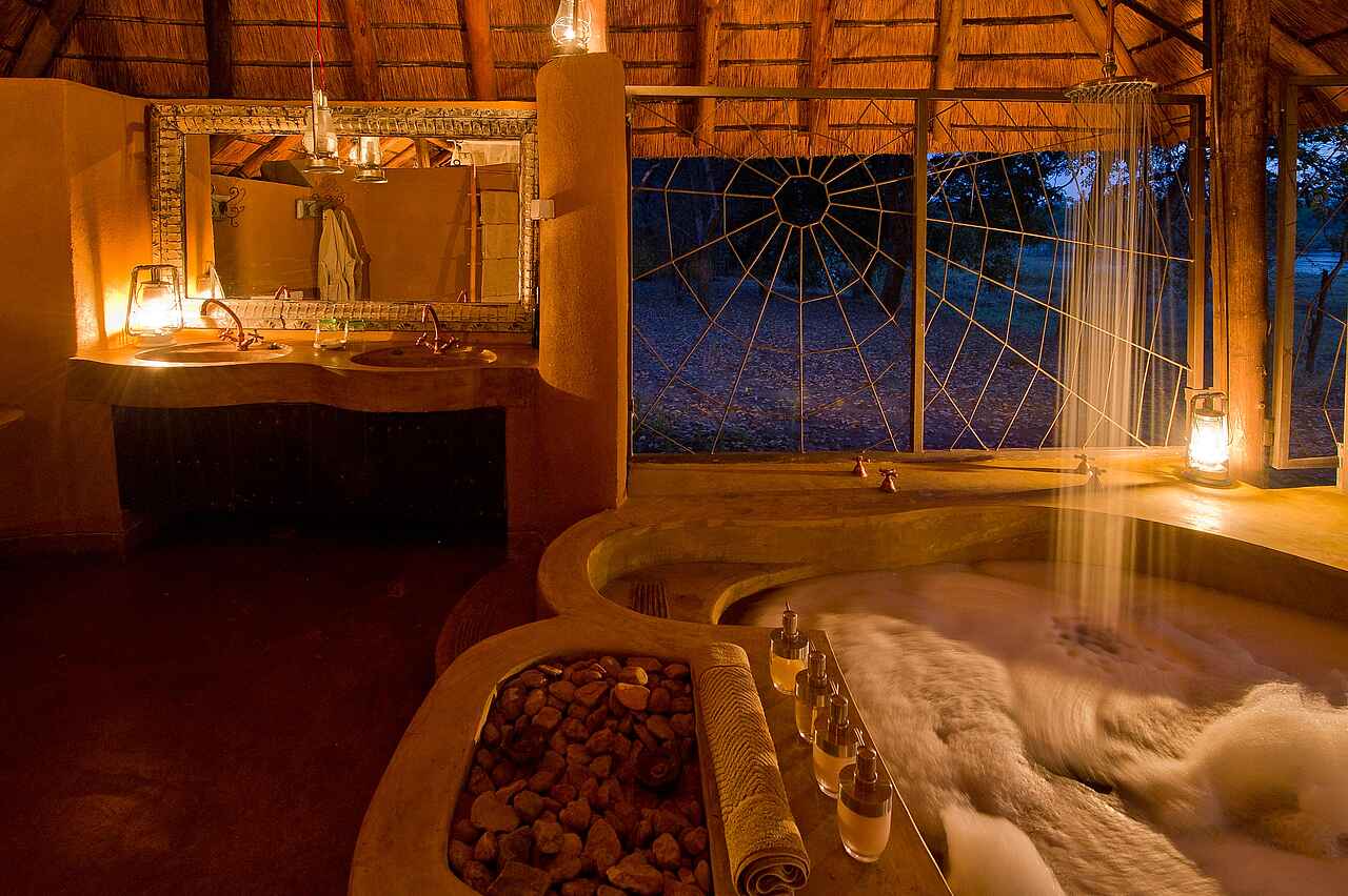Privater Viewing Point im geräumigen Chalet, in der Badewanne liegend, Tiere beobachten.