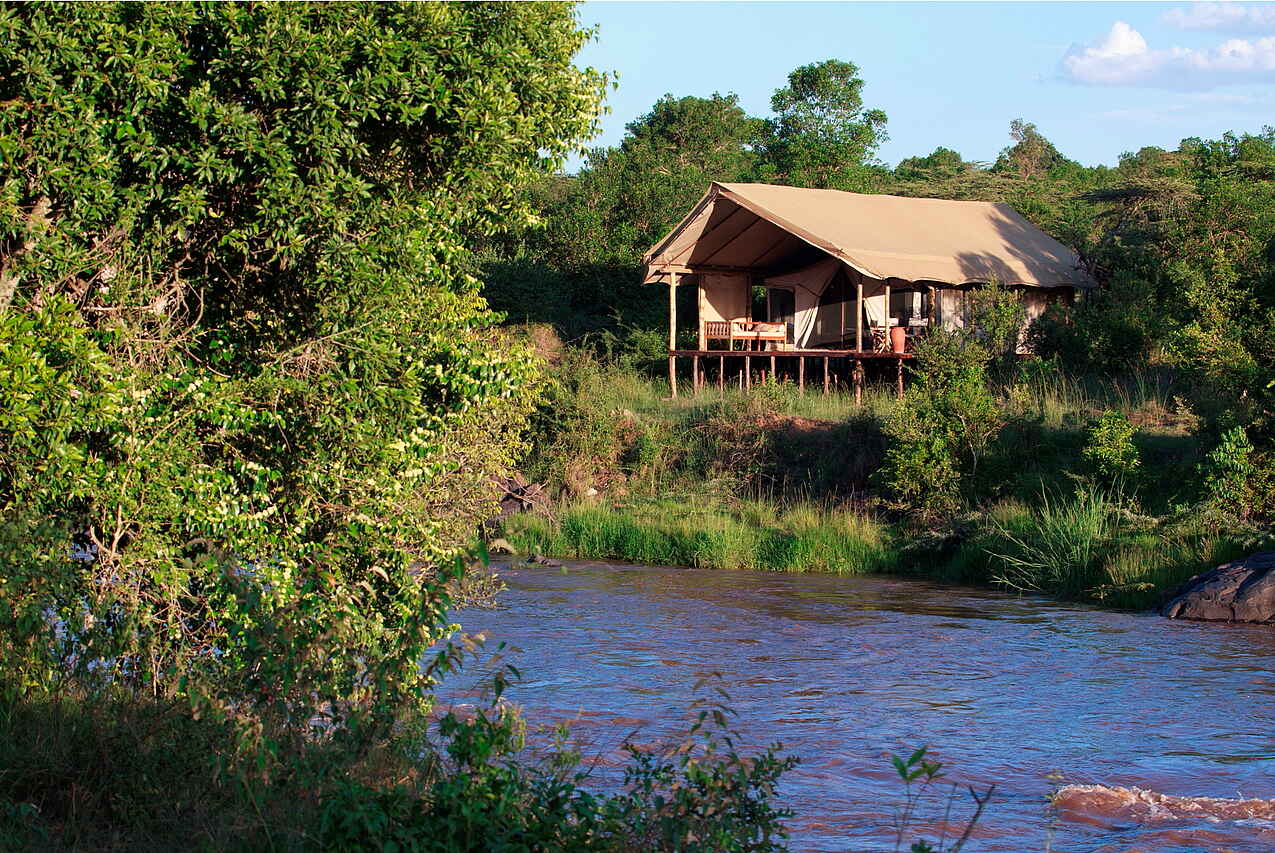 22 Luxus-Zelte, inklusive einer Familien-Einheit, bieten Platz für 46 Personen. Bei Bedarf können extra Betten für Kinder unter 12 Jahren aufgestellt werden. Alle Zelte sind mit eigenem Badezimmer, Dusche, Waschbecken, WC, fließend Kalt- und Warmwasser ausgestattet und haben private Veranden mit Blick auf den Mara River.