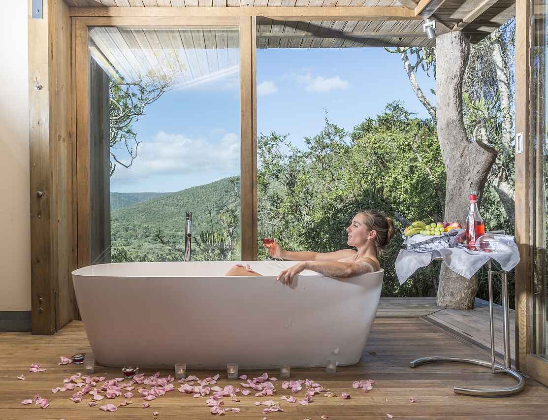80 minütiger Transfer vom Port Elizabeth Flughafen; Selbstfahrer: N2 von Port Elizabeth nach Grahamstown und dann die Coastal Route auf der R72 Richtung Port Alfred, über Alexandria nach Kenton-on-Sea. Dann Richtung Inland 14 km auf der R343. Oder: ca. 110km auf der N2 Richtung Grahamstown, dann auf die R343 nach Salem und Kenton-on-Sea ca. 33km fahren.