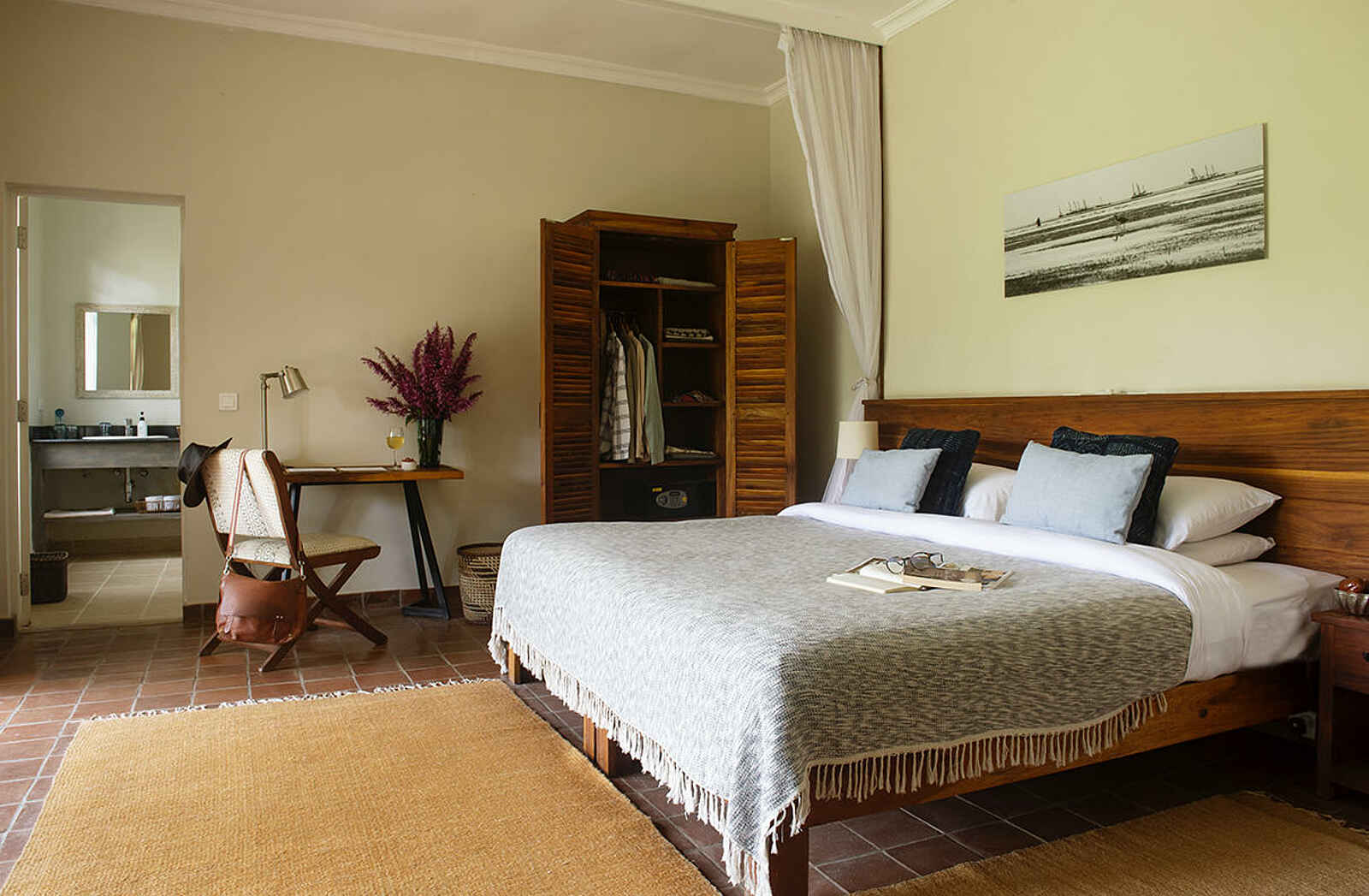 Das Katambuga House verfügt über acht stilvoll eingerichtete Gästezimmer. Vier Zimmer befinden sich im Hauptgebäude, während vier weitere in zwei separaten Gartenhäusern untergebracht sind, die jeweils aus miteinander verbundenen Zimmern bestehen. Die Räume wirken frisch und modern, mit einer dezenten Farbgestaltung und bodentiefen Fenstern, die viel Tageslicht hereinlassen. Jedes Zimmer kann entweder als Doppel- oder Zweibettzimmer arrangiert werden, und die Betten sind mit einem ausziehbaren Moskitonetz ausgestattet. Frische Blumen auf dem Couchtisch und Kunstwerke, darunter beeindruckende Wildtierfotografien, schmücken die Wände. Ein Deckenventilator sorgt für Abkühlung an heißen Nachmittagen, und ein elektrischer Safe steht für Wertsachen zur Verfügung. Durch Schiebetüren aus Glas gelangen Gäste auf eine Veranda mit zwei Stühlen und Blick in den Garten. Alle Zimmer verfügen über ein eigenes Bad mit Dusche und Pflegeprodukte sowie Haartrockner werden bereitgestellt.