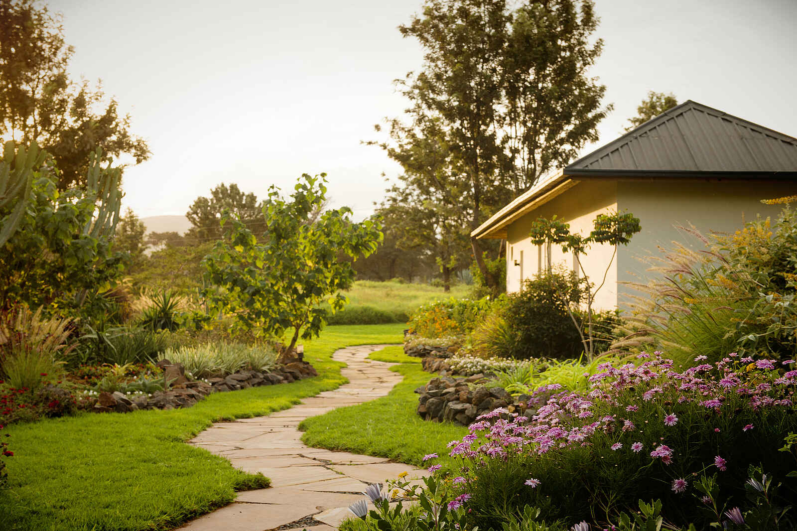 Katambuga House ist ein charmantes Kolonialgebäude im Bungalowstil, das stilvoll mit weißen Wänden, Holzbalken, perlenverzierten Spiegeln und Schwarz-Weiß-Fotografien gestaltet ist. Der offene Wohn- und Essbereich bietet bequeme Sessel und Sofas, wobei der Kamin den zentralen Blickfang bildet. Hier ist auch kostenfreies WLAN verfügbar. Eine großzügige Veranda mit weiteren Sitzgelegenheiten lädt dazu ein, vor dem Abendessen einen Drink zu genießen. Die gepflegten Gärten, voller tropischer Blumen, bieten an klaren Tagen einen beeindruckenden Blick auf den majestätischen Mount Meru. Ein gepflasterter Weg führt zu einem geräumigen Swimmingpool, umgeben von Sonnenschirmen und Liegestühlen.