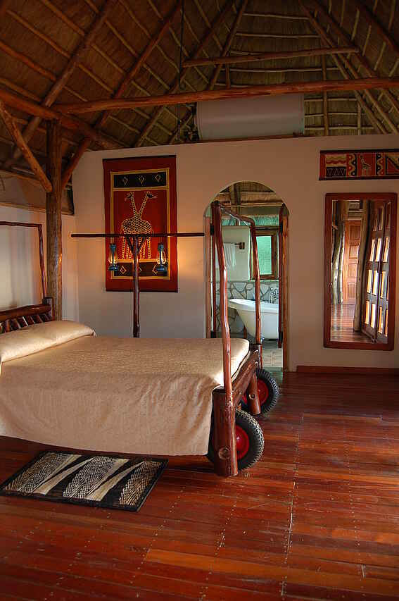 Die Lodge bietet Unterkunft in acht geräumigen, strohgedeckten Cottages, gelegen auf einem wunderschönen Hügel bietet einen wunderschönen Blick auf die offene Savanne in einer ruhigen und entspannenden Atmosphäre. Jedes geräumige Cottage wurde aus lokal verfügbaren Materialien handgefertigt. Die Cottages kombinieren Holzböden, grasgedeckte Dächer und Segeltuch-Waende (Canvas), die man zusammenfalten kann, um einen wunderbaren Blick auf den darunter liegenden Park zu haben. Es gibt 7 reguläre Cottages und ein Familiencottage. Die regulären Cottages verfügen über einen großen offenen Schlaf- und Wohnbereich mit einem Doppelbett und einem „Himmelbett“, das auf die Veranda geschoben werden kann, um direkt unter dem afrikanischen Sternenhimmel zu schlafen (nur während der Trockenzeit empfohlen!). In den Badezimmern gibt es eine romantische Badewanne und eine belebende Regendusche, in denen man sich nach einem aufregenden Safaritag perfekt entspannen kann.
