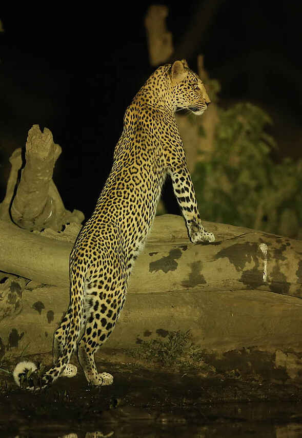 Reisezeit ist von Mitte Mai bis Mitte November, je später in der Saison desto heißer wird es und desto zuverlässiger sieht man die Tiere am Wasserloch vor dem Camp und an den Chitake Springs. Im Oktober erreichen die Temperaturen regelmäßig Werte jenseits von 40° C im Schatten.