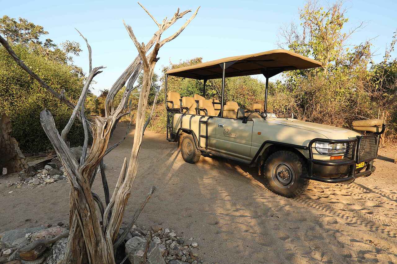 Eigene Anreise ausschließlich mit Allradfahrzeug und nur für Gäste mit Erfahrung. Ansonsten fliegt man entweder zum eigenen Kavinga Aitrsip oder zum Mana Pools Airstrip und lässt sich dort abholen.