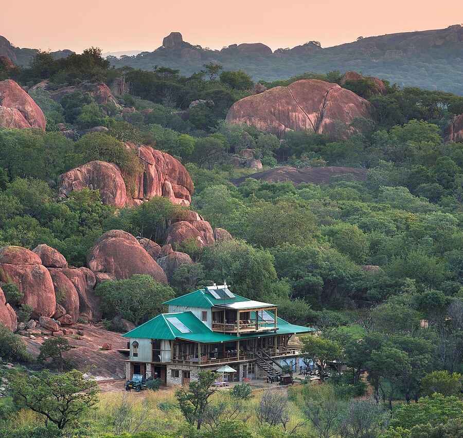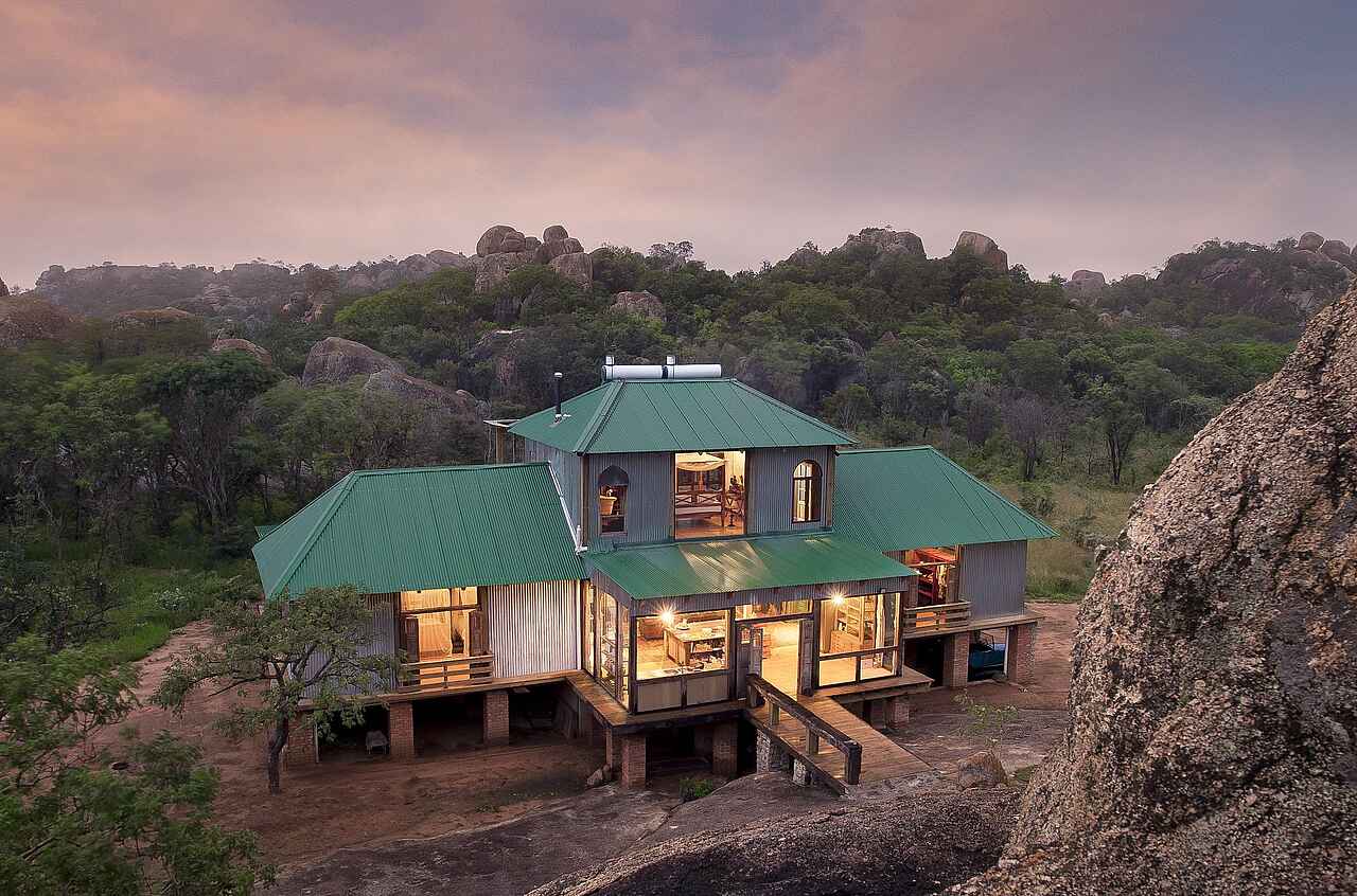 Khayelitshe Hous liegt umgeben von Felsen inmitten der legendären Matobo Hills, einem Gebirgszug südlich der Stadt Bulawayo. Es handelt sich um ein 1.200 Hektar großes Privatgrundstück knapp außerhalb der Grenzen des Matobo Nationalparks. Matobo Hills ist eine Welt in Granit, die so ganz anders anmutet als der Busch und die Savannen.