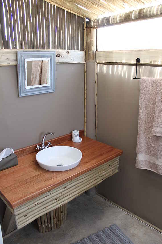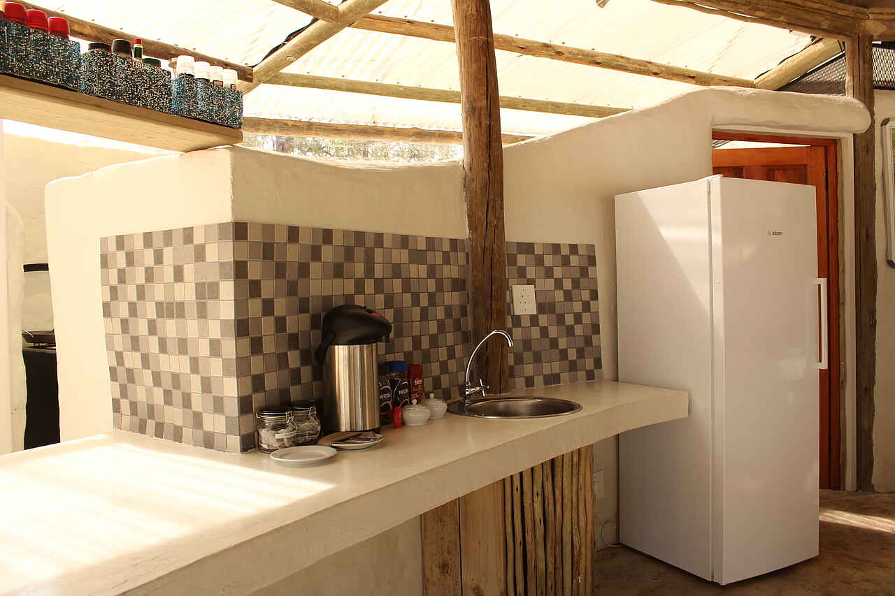 6 feste, reetgedeckte Bungalows (ca. 20 m²) mit Doppelbett oder 2 Einzelbetten, sowie privatem Bad. WC innen mit verschließbarer Türe, Waschbecken und Dusche außen, fließend Kalt- und Warmwasser. Kleine Veranda. Außerdem 2 Familieneinheiten mit jeweils 4 Betten und einem privaten Bad.
