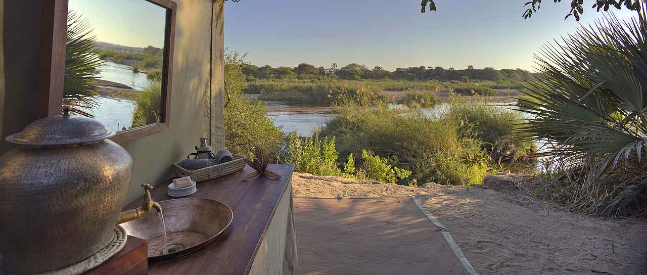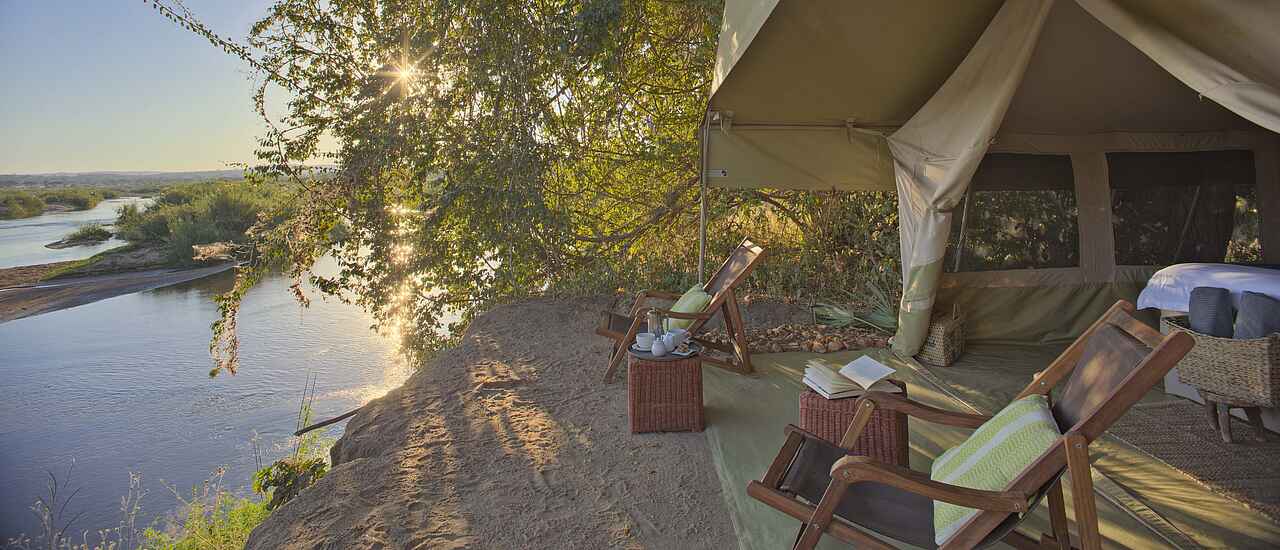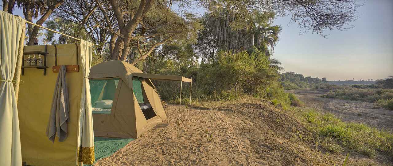 Basiscamp: stabile Zelte mit hitze- und regenundurchlässigen Planen; Matratzen; überdachte Veranda; außerhalb liegendes Waschbecken und Eimerdusche mit warmen Wasser; Toilette Flycamp: drei einfache Zelte mit je zwei Feldbetten; Toilette, Waschbecken und Eimerdusche mit warmen Wasser in seperater Zeltkabine