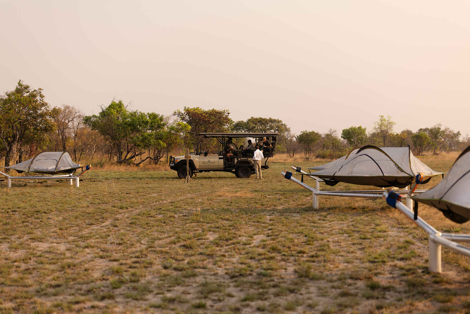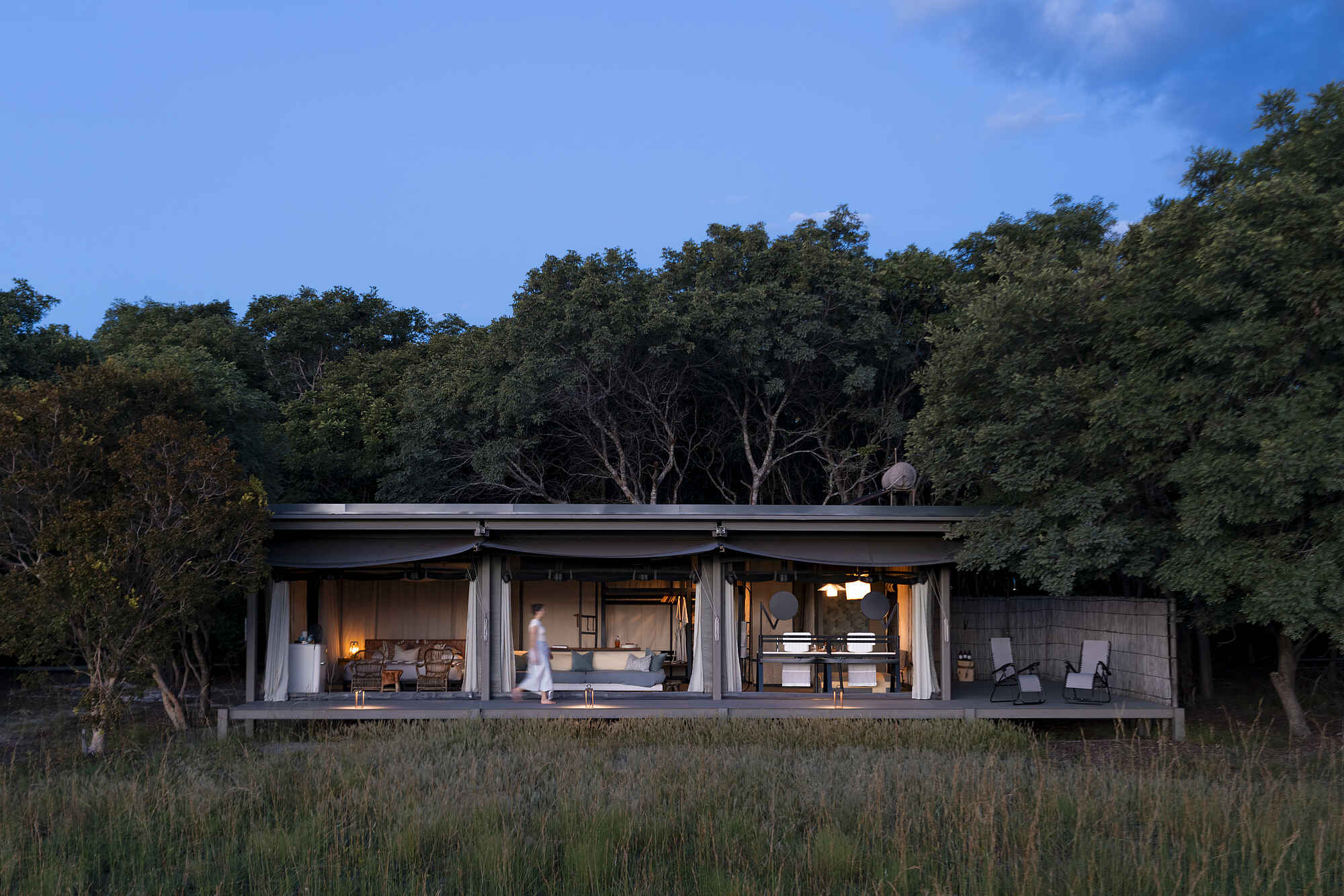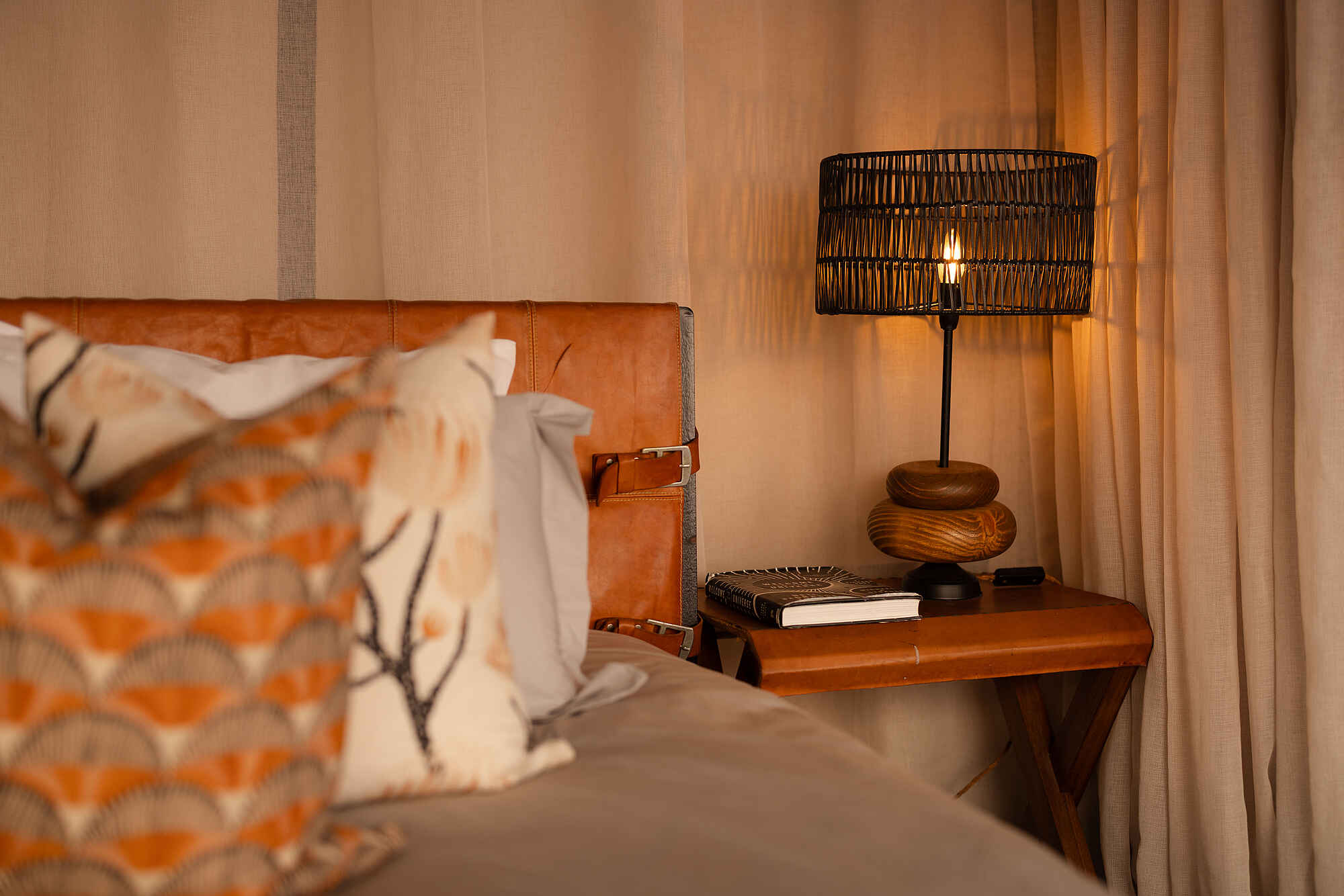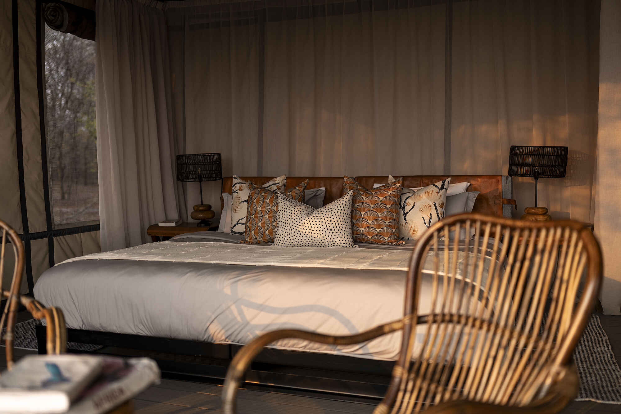 Die King Lewanika Lodge umfasst fünf Zeltsuiten und eine großzügige Familiensuite, alle auf erhöhten Plattformen mit freiem Blick über die weiten Ebenen der Liuwa-Plain. Hochwertige Materialien wie Leder, Baumwolle und Canvas verleihen den Unterkünften eine stilvolle Mischung aus modernem Design und klassischem Safari-Flair. Jede Suite ist mit einem Doppel- oder zwei Einzelbetten mit Moskitonetz, einer Sitzecke, Nachttischen mit Beleuchtung, einem Standventilator und großzügigem Stauraum ausgestattet.