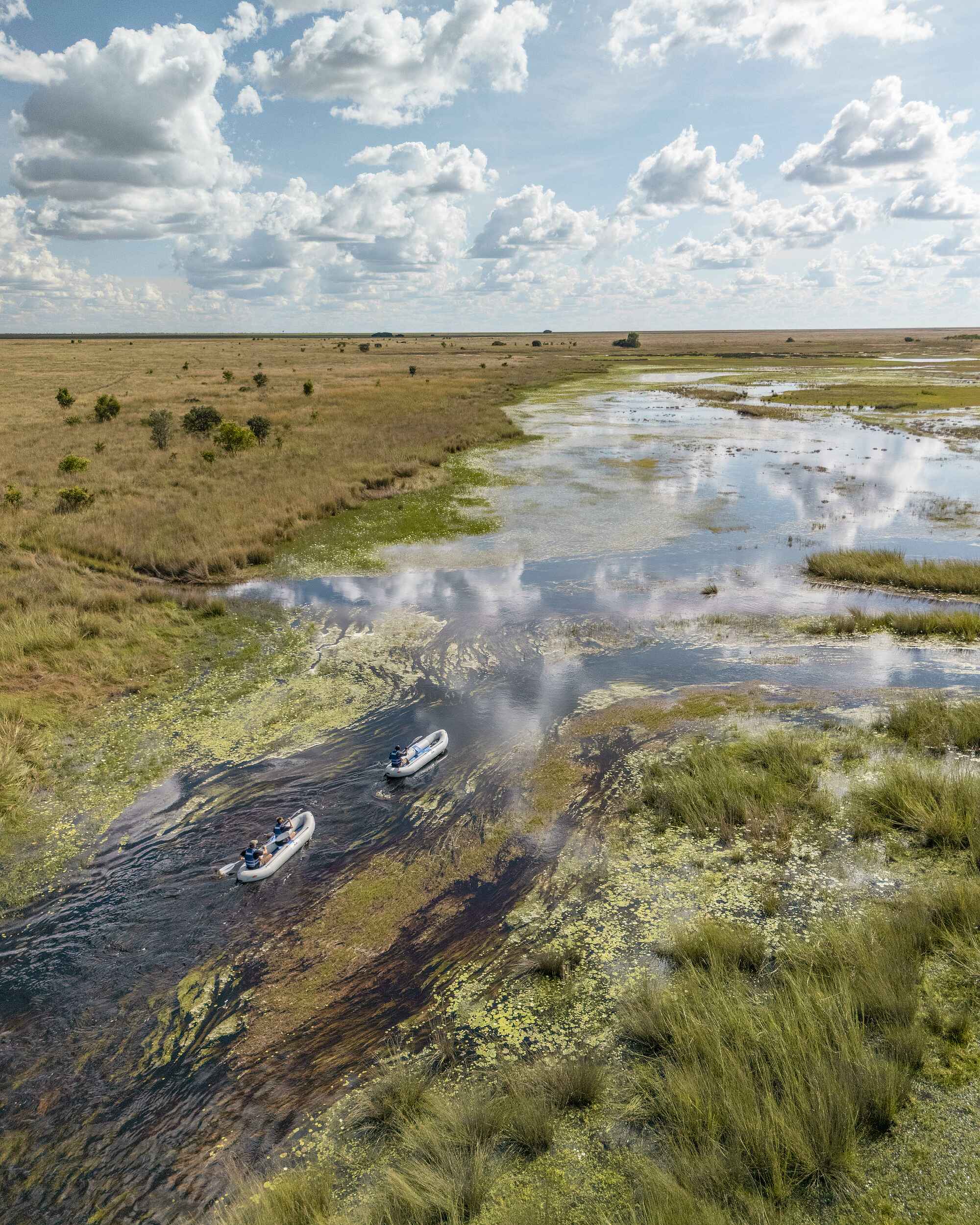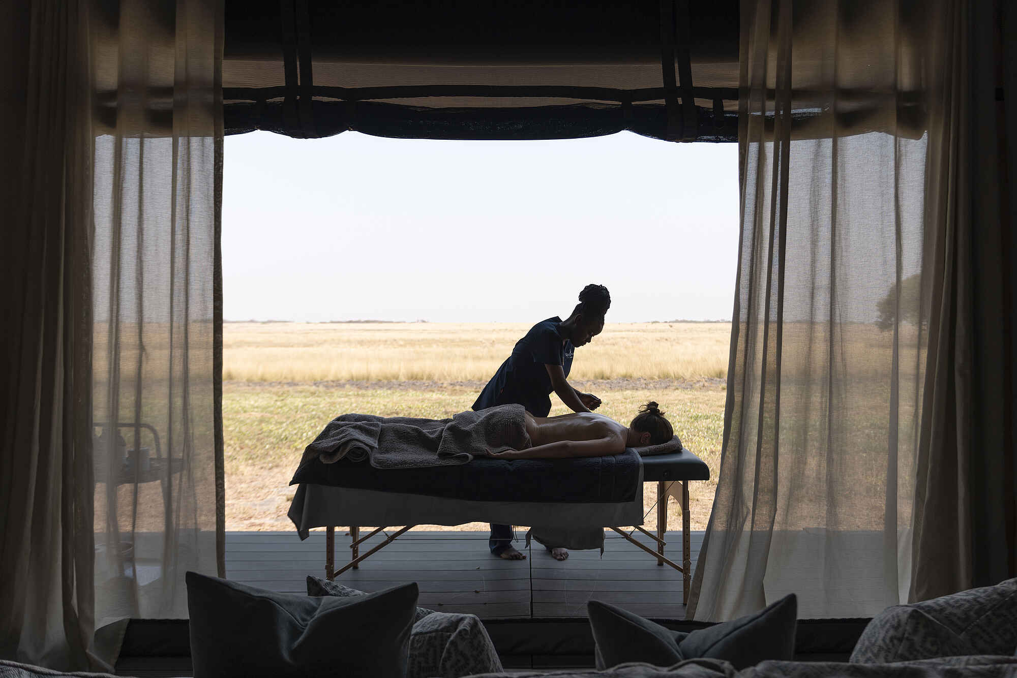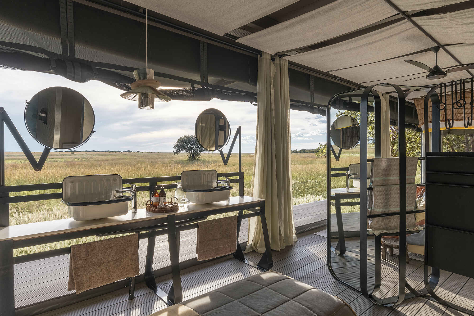 Die En-suite-Badezimmer bieten eine Spültoilette, Doppelwaschbecken, eine große begehbare Dusche sowie eine Außendusche. Auf den privaten Terrassen laden Safari-Stühle dazu ein, die Weite der Landschaft in aller Ruhe zu genießen. Die Familiensuite bietet zusätzlichen Raum mit zwei Schlafzimmern und zwei Bädern und eignet sich ideal für bis zu fünf Gäste.
