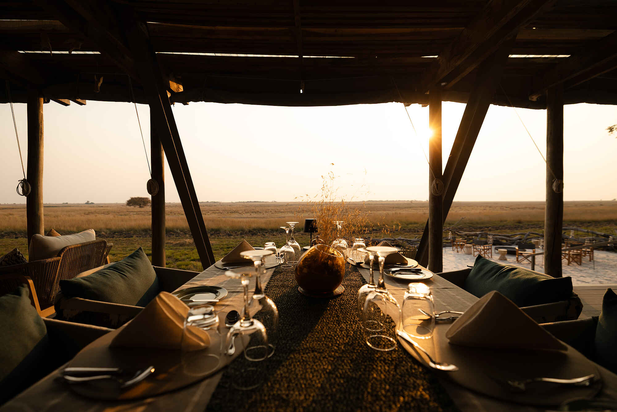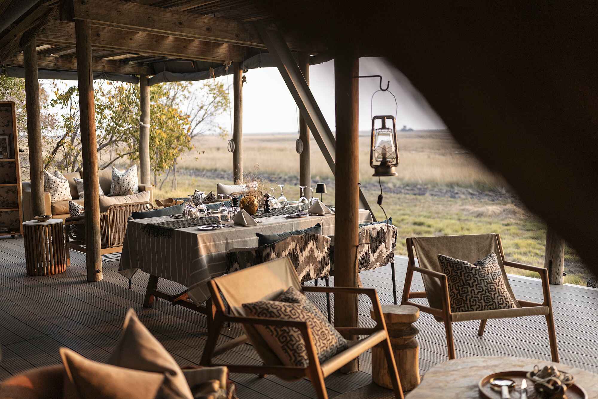 Das Hauptgebäude der King Lewanika Lodge besticht durch seine offene Architektur und einen weitläufigen Lounge- und Essbereich. Natürliche Materialien wie Holz und Stroh verleihen eine warme, authentische Atmosphäre, während gemütliche Sitzgelegenheiten für Komfort sorgen. Eine gut ausgestattete Bar bietet erlesene Getränke, die sich auf der erhöhten Terrasse mit Blick über die Liuwa-Ebene genießen lassen. Abends schafft das knisternde Lagerfeuer unter dem afrikanischen Sternenhimmel eine stimmungsvolle Kulisse für den Ausklang des Tages.