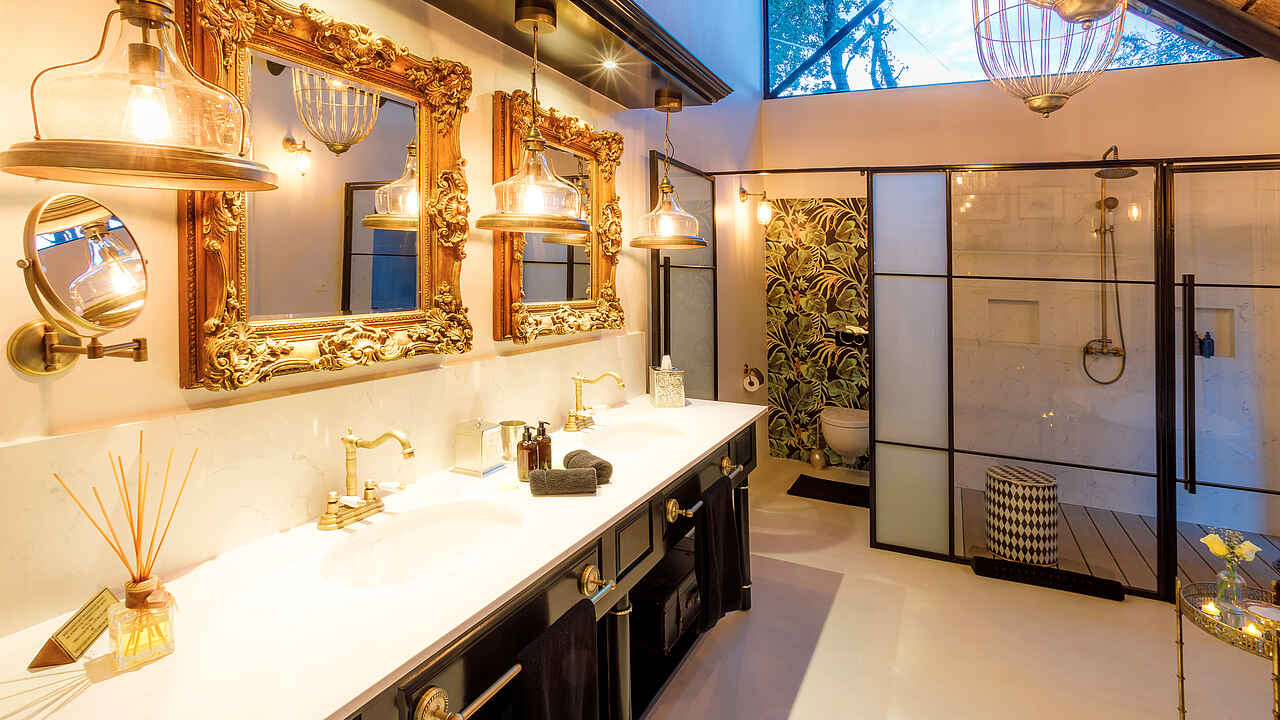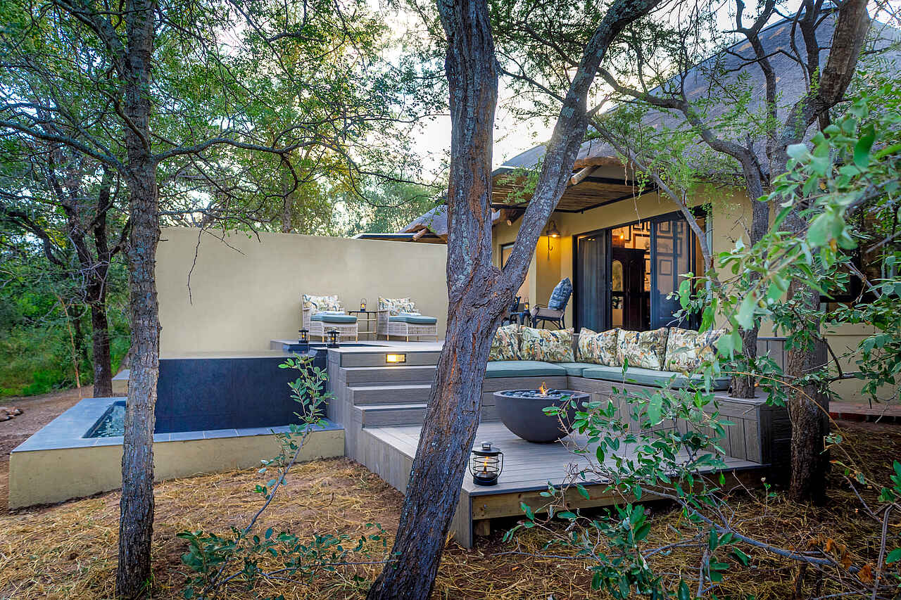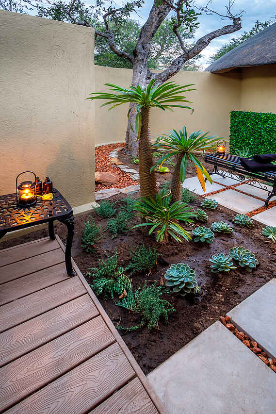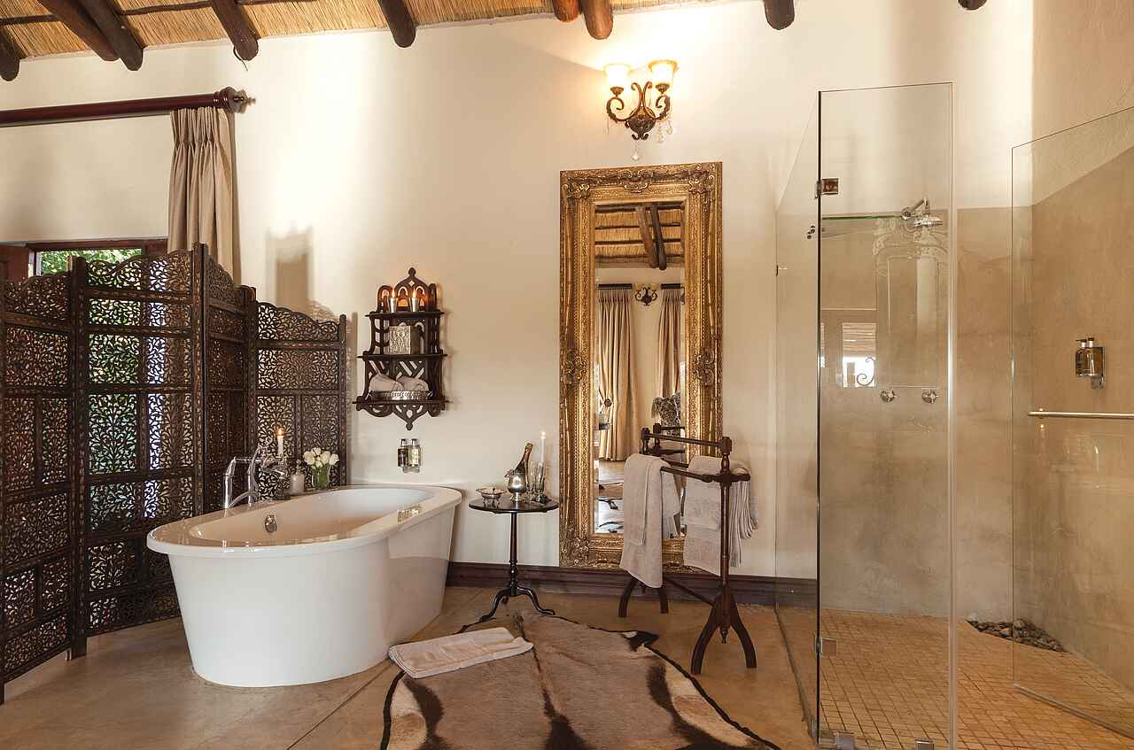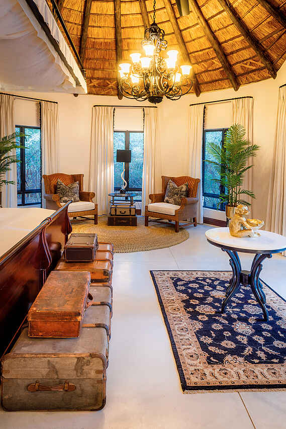 King’s Camp: 4 Luxury Suiten, 2 Superior Suiten, 1 Superior Family Suite und 2 Honeymoon Suiten Waterbuck Private Camp: Villa mit 1 Mastersuite und 2 Luxury Suite, 1 separate Garden Luxury Suite. Die Standard Luxury Suites im King’s Camp sind alle klimatisiert, en-suite mit großem Loungebereich, Bad mit freistehender Badewanne, doppeltem Waschbecken, Innen- und Außendusche, Badeartikeln und Handtüchern, sowie Toilette; im Schlafzimmer Safe, Minibar, Telefon, WiFi, Moskitonetz über dem großem Doppelbett, Moskitospray, Kaffeemaschine; außen eine privater Veranda mit Hängematte. In der Lounge und auf der Veranda sind diverse Sitzmöglichkeiten. Die Superior Luxury Suite und Family Suite sind wie die Luxury Suite ausgestattet, aber geräumiger, mit privater Feuerstelle auf der Veranda, und privatem Infinity Pool. Die Honeymoon Suiten liegen am äußersten Ende des Camps, sind sehr geräumig und mir großem privaten Plunge Pool ausgestattet. Die Mastersuite des Waterbuck Private Camps ist im Ausstattungsstandard wie die Luxury Suites jedoch mit sehr großer Lounge und Badezimmer. Sie befindet sich im Obergeschoss der Villa, die 2 weiteren Luxury Suiten im Erdgeschoss, die Garden Suite in einem separaten Chalet.