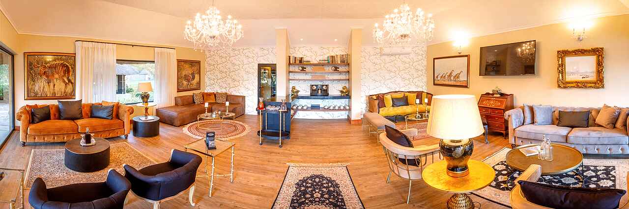 King's Camp Main Camp: Rezeption und Curio Shop in einem großen, reetgedeckten Langhaus; separate davon eine große, reetgedecktes Hauptlodge mit Terrasse großer verglaster Laube, die als Outdoorlounge dient; zudem eine Bar und Lounge innerhalb des Gebäudes, nebst Restaurant. Vor der Hauptlodge befindet sich der Pool und in Sichtweite ein Wasserloch. Abgesetzt von der Hauptlodge das Gym und Spa; Laptop mit WiFi und TV vorhanden. Das Waterbuck Private Camp liegt ca. 500 Meter abgesetzt vom Hauptkomplex und bildet eine separate Einheit. Die Villa verfügt über eine eigene Lounge, Dining Area, Küche mit privatem Chef und Butler, Swimming Pool, Terrasse, Boma, Bibliothek, PCs mit WiFi sowie Farzeug mit Guide und privatem Garten.